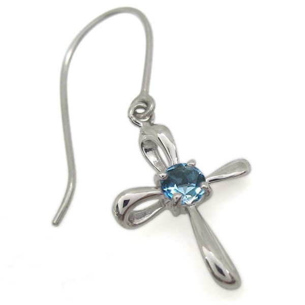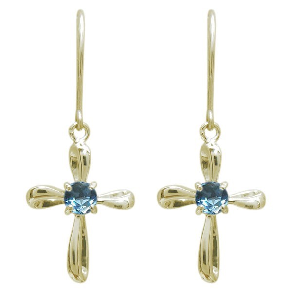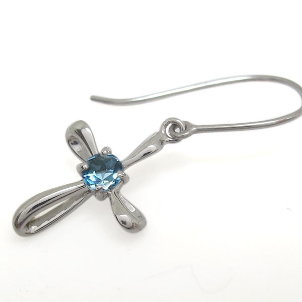ブルートパーズ ピアス 揺れる クロスピアス 十字架 フックピアス