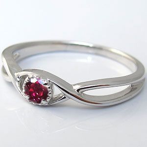 7月誕生石ルビーを一粒使用したシンプルデザインの18金製リングです。