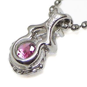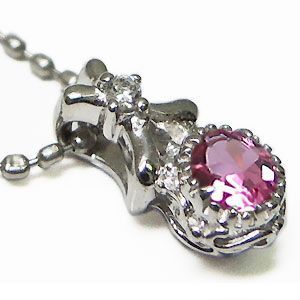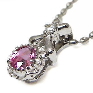 10月誕生石ピンクトルマリンを一粒使用したアンティークデザインのプラチナ製ネックレスペンダントです。