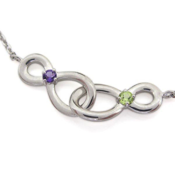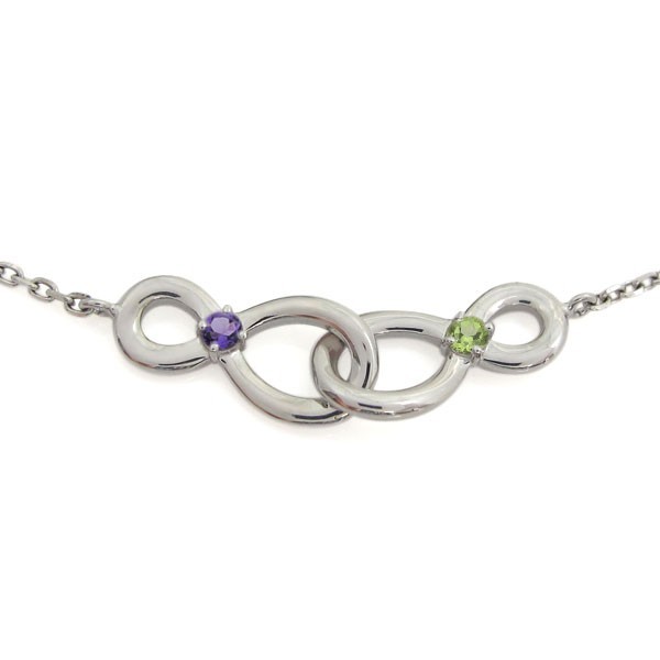 2月誕生石アメジストを使用したプラチナ製のインフィニティ(無限)モチーフブレスレットです。