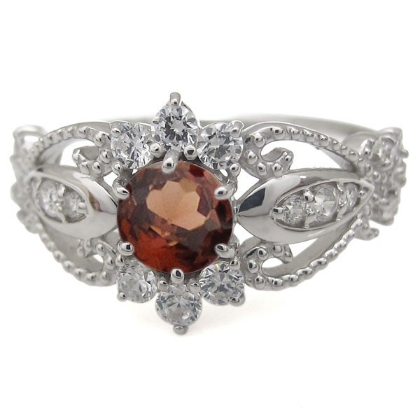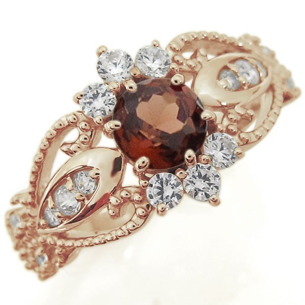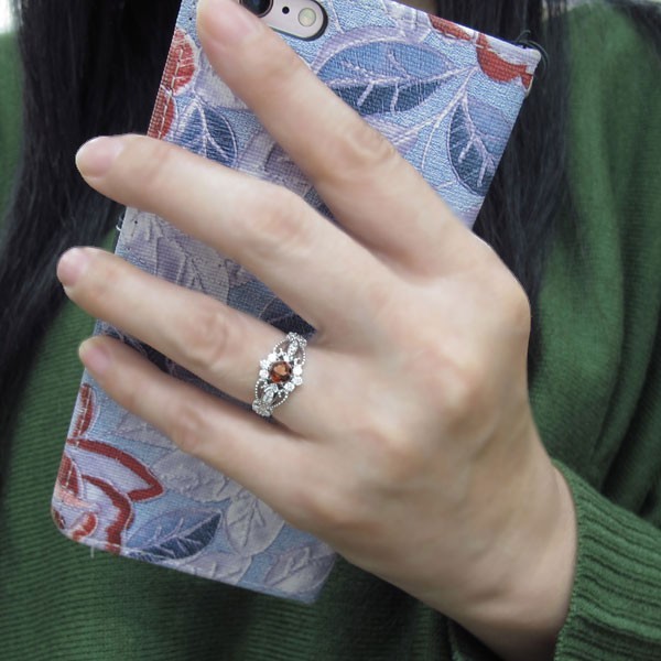 ■石名:主石 ガーネット(約 5.0mm/天然石使用)脇石 ダイヤモンド(18石合計で約 0.29ct/天然石使用)