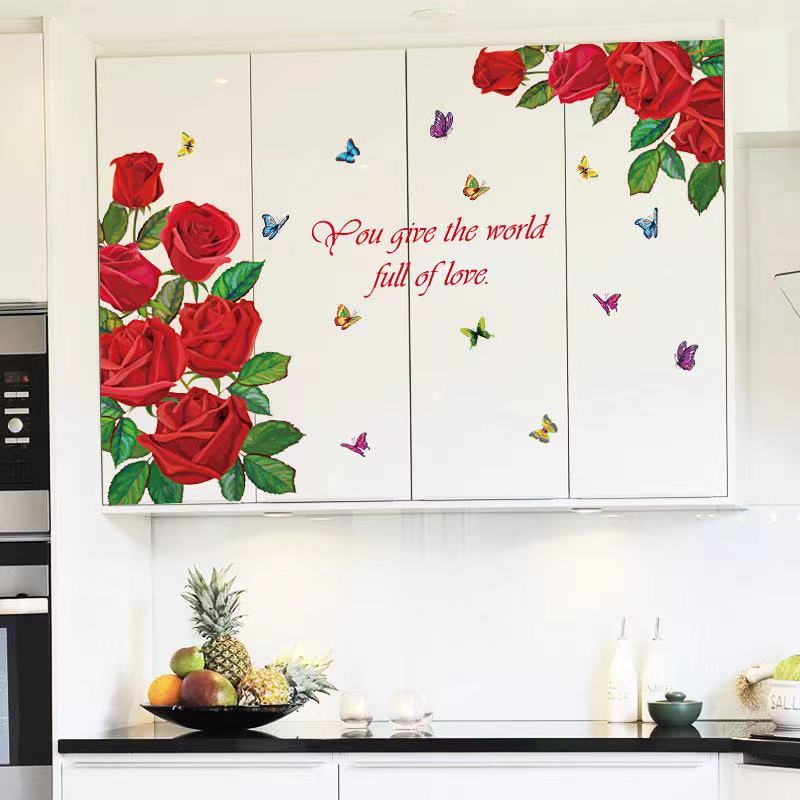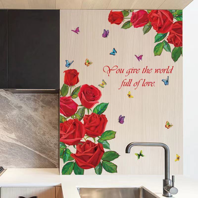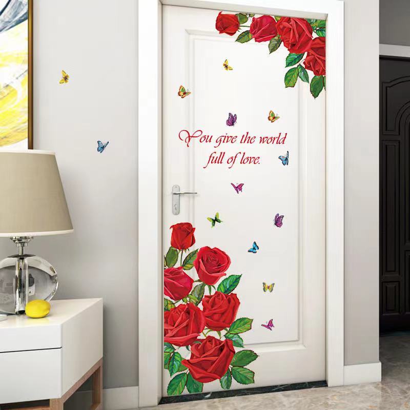 (NO.84) DIY剥がせる 壁飾り ウォールステッカー 赤ローズ B