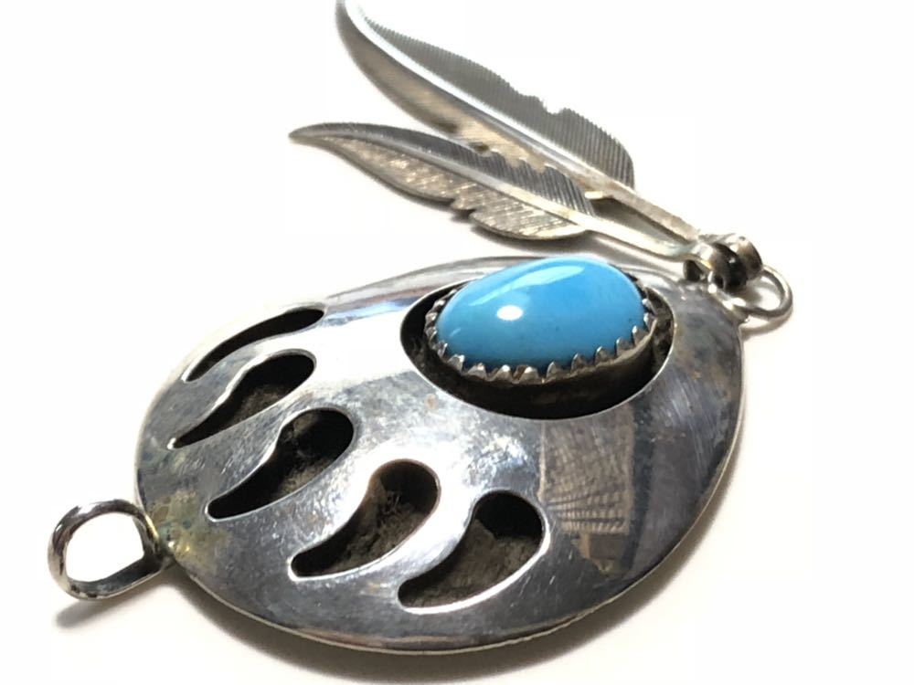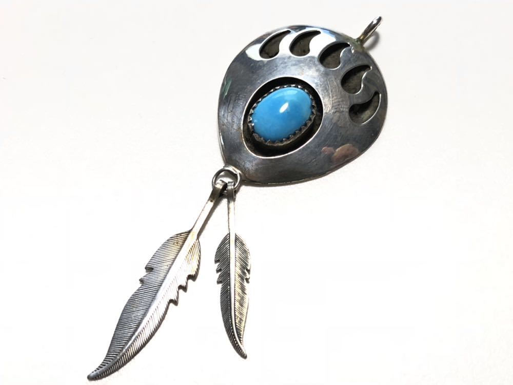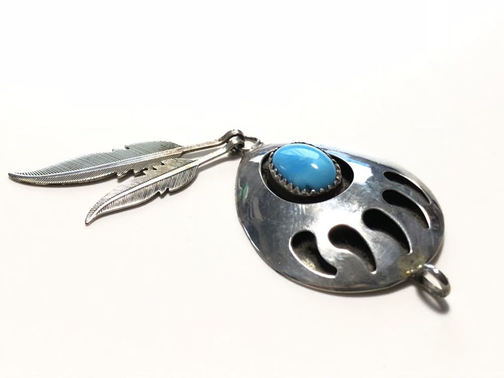 インディアンジュエリーのターコイズ、SILVERを使用した、ベアークローデザインのペンダントトップです。金属部分はSILVER使用ですが、刻印はありません。