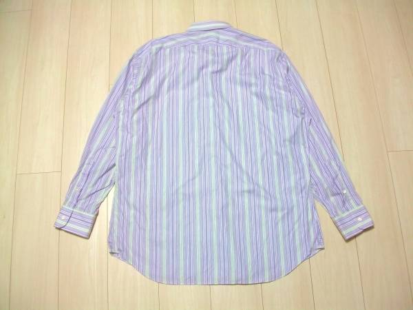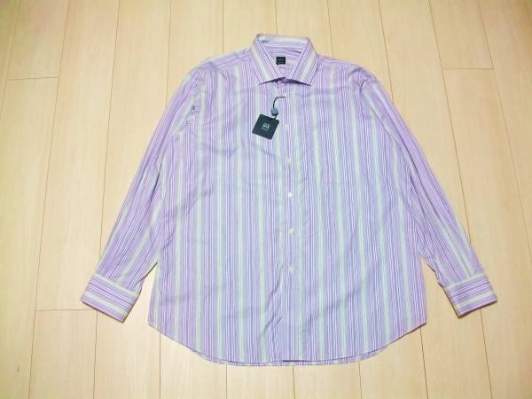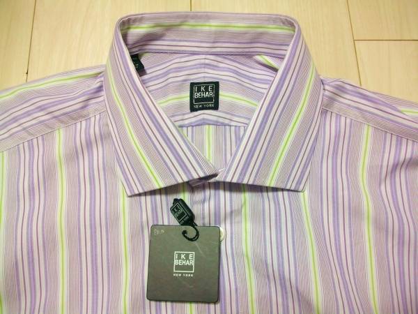 アメリカ、IKE BEHAR(アイクベーハー)社のシャツです ハイクオリティのシャツ類を作っているブランドです またラルフローレン等の有名ブランドのシャツを手がけております ■未使用なのですが保管による使用感が少々あります タグは付いております(ダメージがあります) ■サイズは17 -Lになります 素人採寸ですが 身幅(脇の下で)67センチ 身丈84センチ 裄丈(首後ろ真ん中~肩山~袖先)88センチありました 長身で大柄の方に合うと思います ■生地は100%コットンです ■紫色を基調としたストライプ柄になっております ■襟はワイドスプレッドになっております ■アメリカンシャツブランドがお好きな方におすすめです 是非よろしくお願い致します