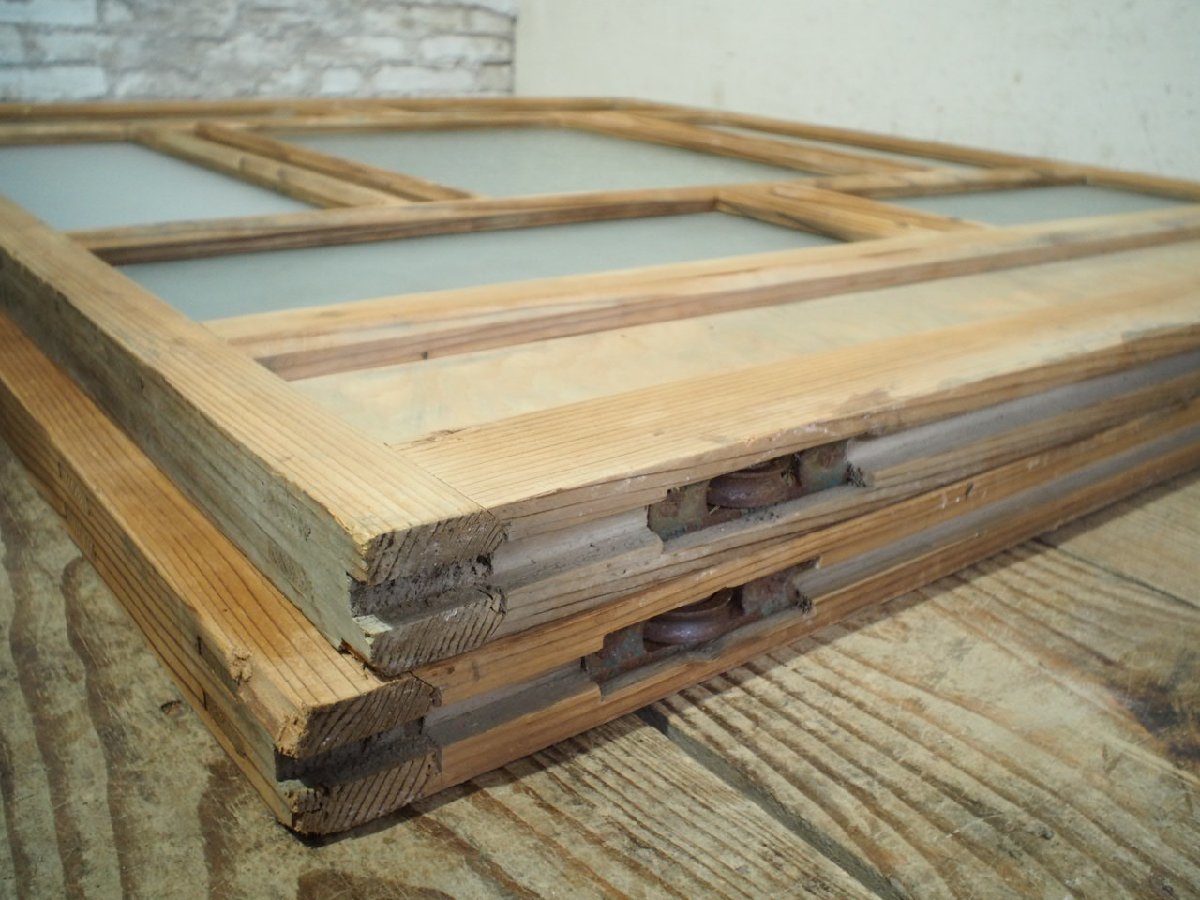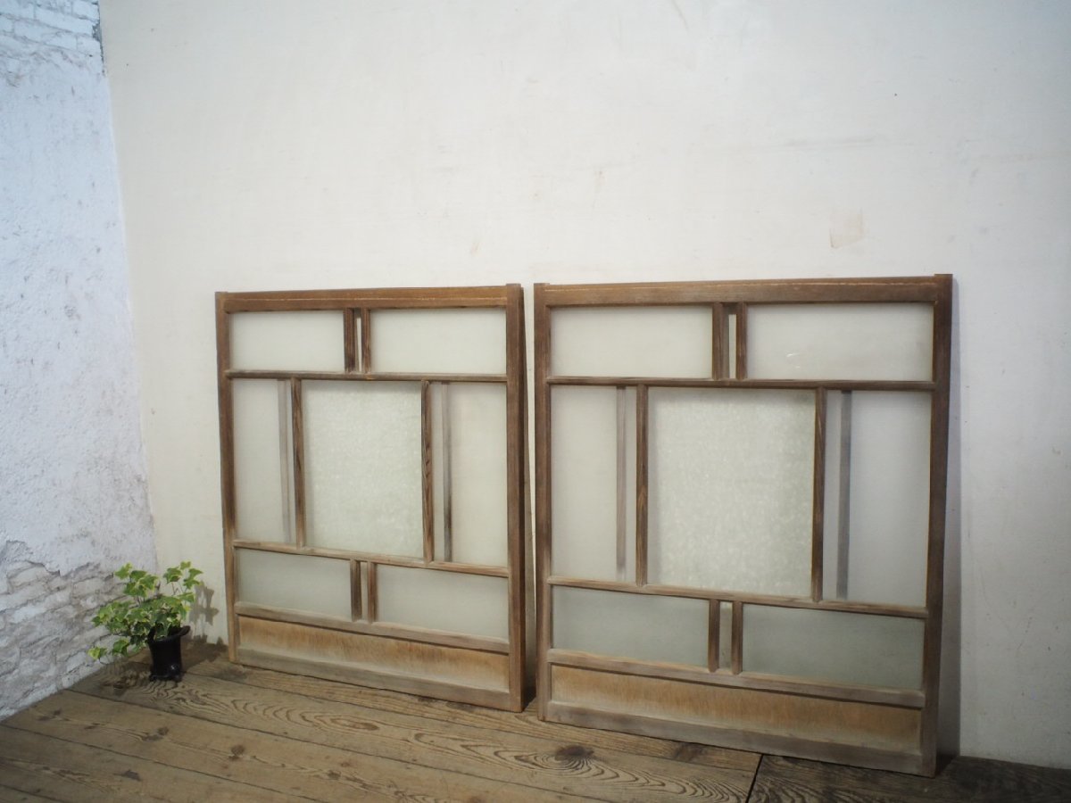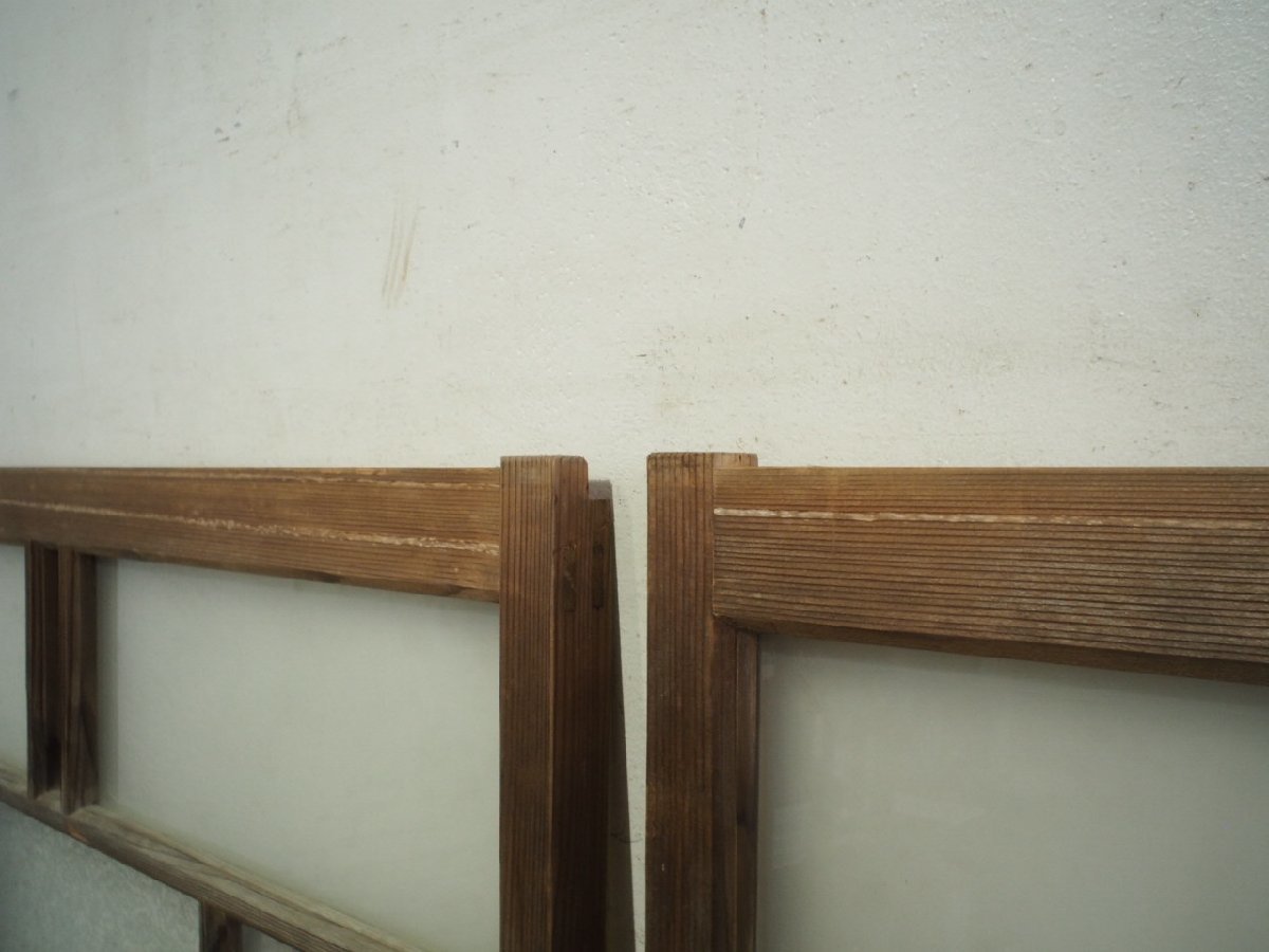 商品情報 | ■商品詳細■ アンティークの古い木枠引き戸、2枚セットです。 長年使い込まれた味わいのある品です。 ガラスは、葉ガラスと透明ガラス、曇りガラスを使用しています。 一般のご家庭はもちろん、レトロな店舗什器にもお勧めです。 経年の傷や欠け、染みや木枠の欠け等がありますが、使用には問題ありません。 ガラスにヒビや割れはありません。 古い物とご理解いただければ幸いです。 ご不明な点などありましたら、質問欄にてお願いします。 ■サイズ■ 全体(最大値) (H 104cm×W 90cm×D 3cm)×2枚 竪框 3cm 多少の誤差はご了承下さい。 |