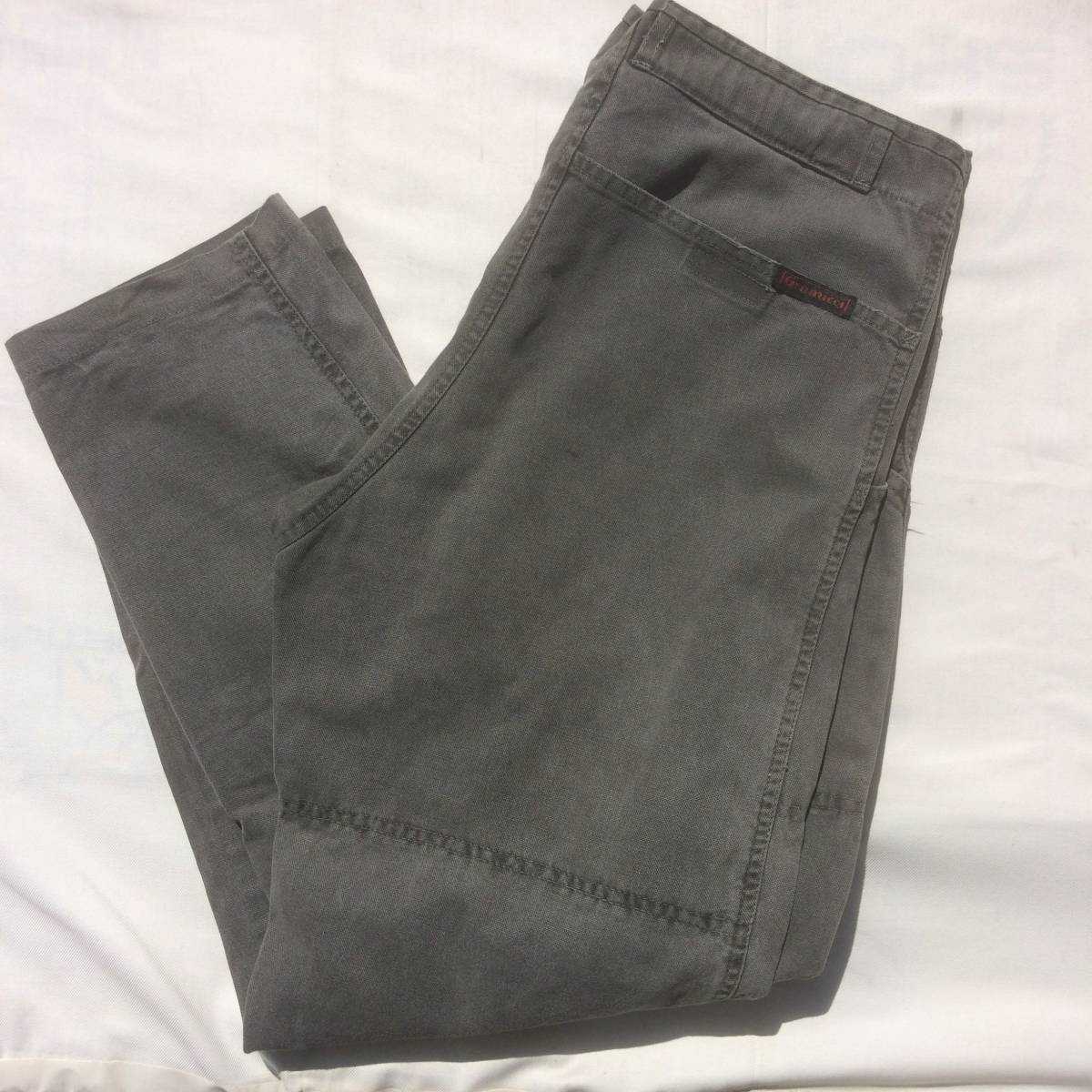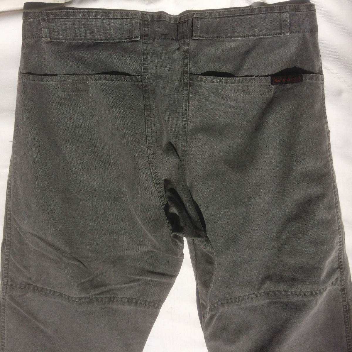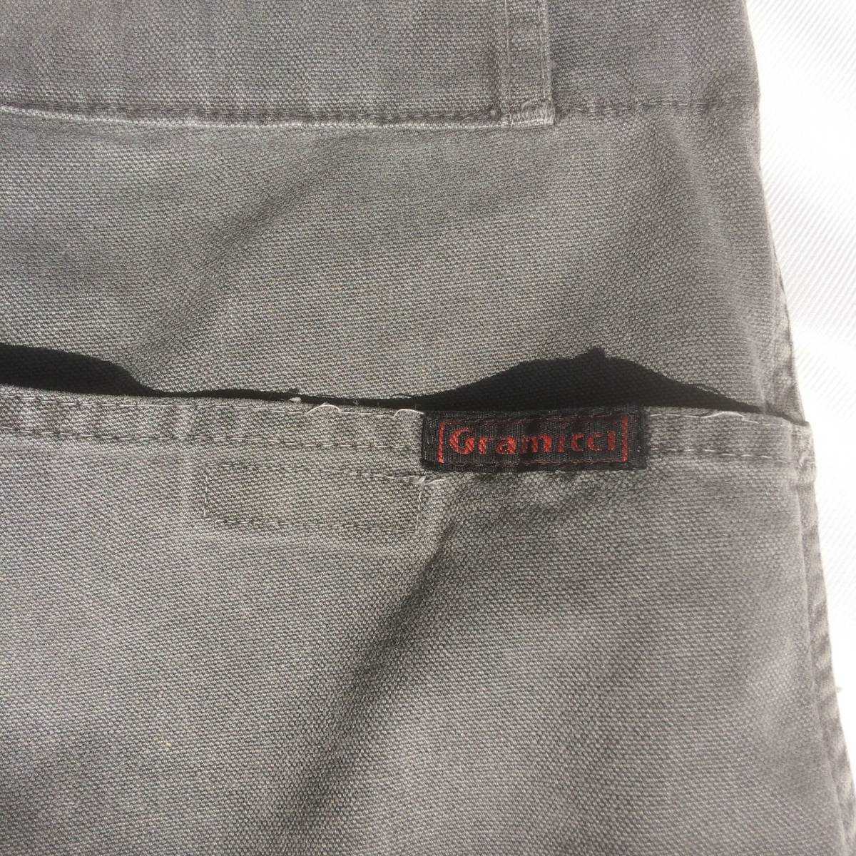 gramicci bigwall pant ( グラミチ) ビッグウォールパンツ。 used ウエストベルト欠損 裾丈上げ済 他程度良好 90年代usa 製 chacoal grey cotton duck サイズ s ウエスト86cm レングス77cm裾幅19cmわたり31cm easy pant という認識が強いgramicci の 正反対のcotton heavy duck ウエストフロント バックに 2つの トンネル belt loop が有り ベルト固定可能 ウエスト内側に ゴム生地がないもの。 左右L カーブ pk 後 ベロクロpk 膝 2重生地2重生地裾 ベロクロあり クライミング時に knee pad などを入れることが可能 左右後ろの、back pk は、大きく 登山時に すぐに取り出せる ベロクロ式で さらに pk と、お尻を 保護する 役目を果たすもの。 まるで 戦車の様な 肉厚なcotton duck 生地でwork brand にはない 裾に向かい テーパードする 形も クライミング 背景のある物。 アウトドア ブランド P社の パンツ生産担当をしていた グラミチのオーナーである グラハムが、当時 最も ヘビーかつ 機能的な クライミングパンツですが 色むらを新品時から 再現した ピグメントダイを採用して適度なwash をかけることで 動きやすさを 追求しています。 後の継続モデル マウンテンパンツ と比較すると お尻側 縦に 生地を 切り返す方法 front PKの 生地を 2重にして PK 層を 作るために ステッチをかける方法など 現在の生産方法では 手間がかかりすぎるため 採用されない まさに ファッション ではなく ファンクション 機能を優先させた 生産姿勢は まさに 圧巻。 原則的に出品商品につきましてはNoクレームNoリターンでお願いします。但し、計測の誤差 説明不十分による状態記載の漏れ、などがありましたら出来る限り誠実に対応させていただきますので、 商品到着後、評価の前に、取引ナビから、その旨ご連絡ください。 落札後最低3日以内にご連絡 決済を お願します。 ・気になる点がございましたらお気軽に質問欄からご質問下さい。 ・他にも出品中です、よろしければその他のオークションもご覧下さい。