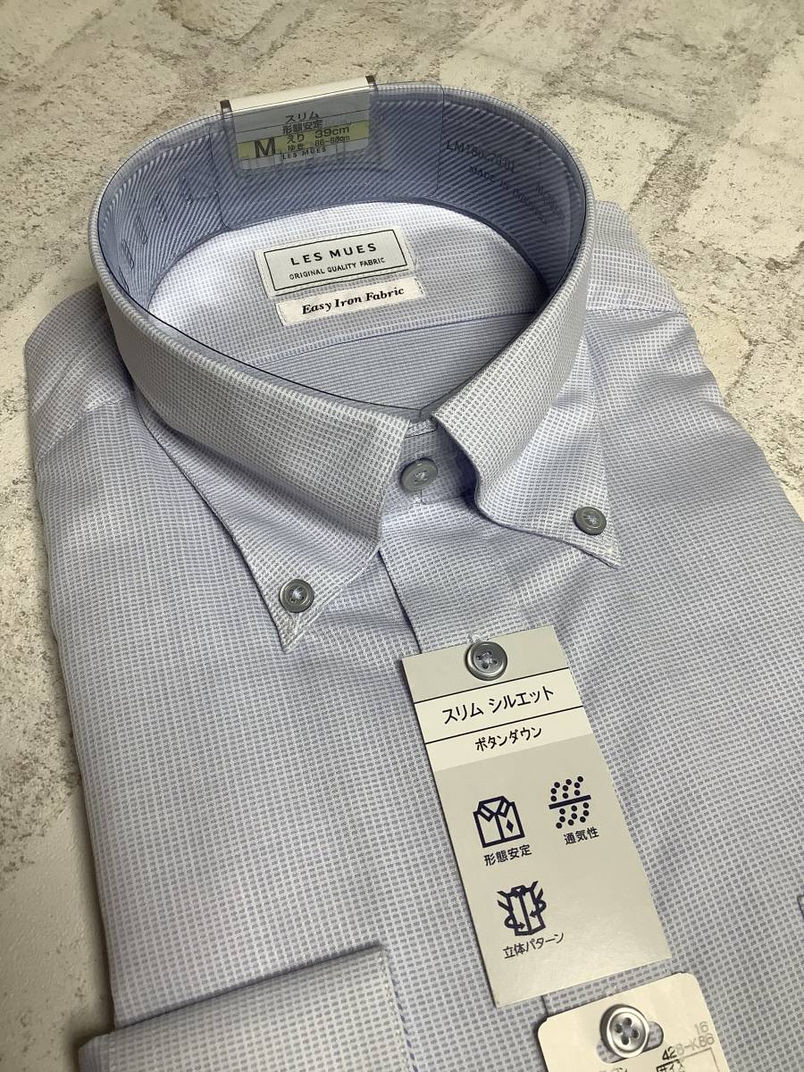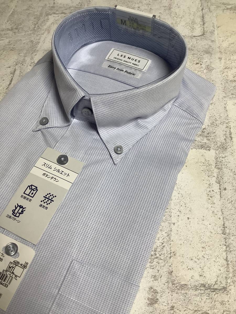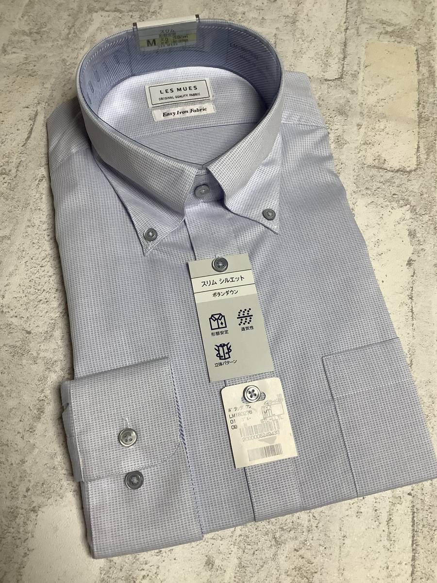 新品 手の長い39-88長袖Mサイズ ブルー小柄生地のシルプルボタンダウンカッターシャツ★ドレスシャツ 定価4,990