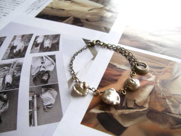 私的・クローゼット・・シリーズです♪パールの憧れ・・シックで華やかな芥子パールのブレスレットです♪花びらのようなシャンパンゴールドの芥子パールを集めて可憐な表情です♪芥子パールは10ミリから13ミリ位です♪長さは全長23センチ位で調節自由です♪お揃いのネックレスやピアスも出品しています♪シンプルで長く着けていただけるデザインを考えて作りました♪♪ハンドメイドをご理解頂いてノークレーム、ノーリターンでお願いします。