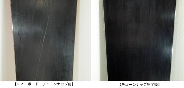 ●滑走性能と回転性を向上させる艶出しサンディング、当工房オリジナルのマイクロ研磨。非常に細かい金属砥粒を圧着したサンディングベルト で滑走面を低速研磨します。ケバは完全に取り除かれ、光沢をもった非常に滑らかな滑走面が出来上がります。カービングにもスライドにも優れた 滑走性能を発揮します。 |