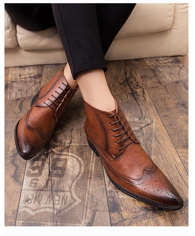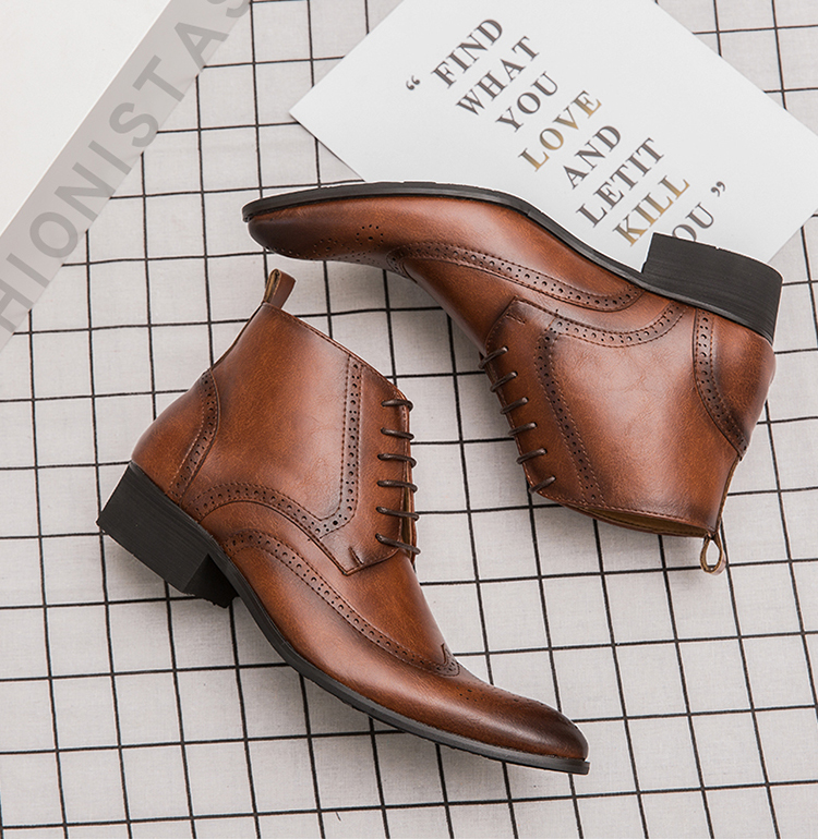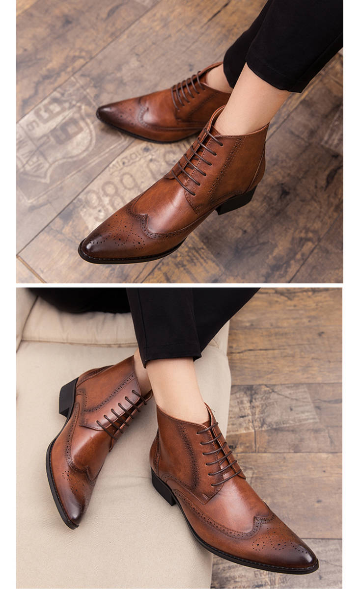 ★新品★メンズ TG21613-27.5cm/45 ショートブーツ ブラウン(2色) ビジネスシューズ ワークブーツ ウィングチップ