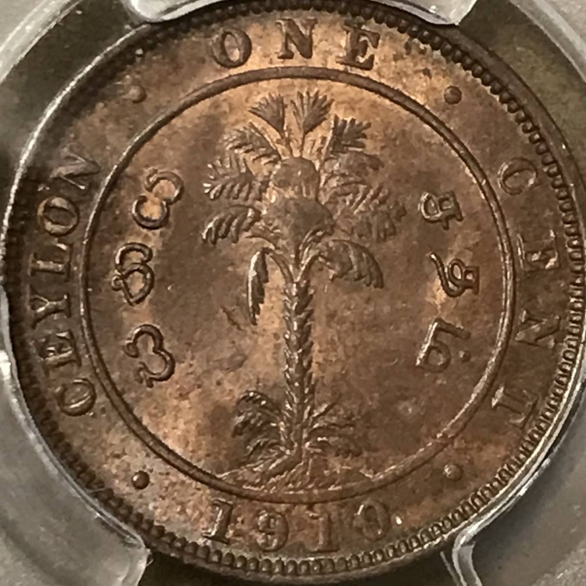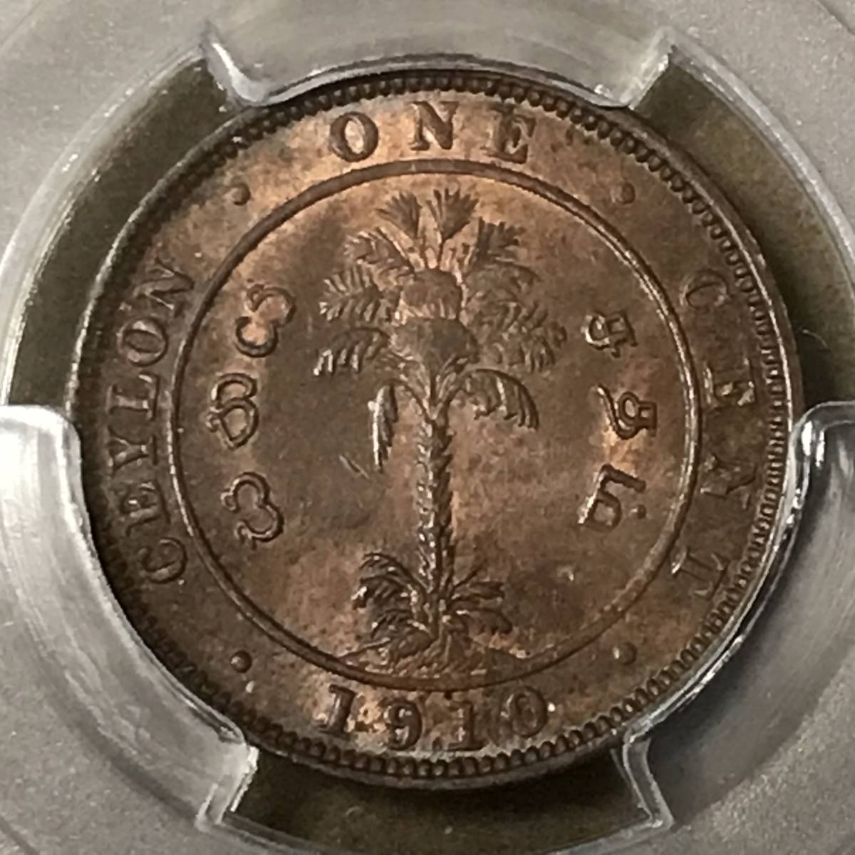 ★1910 セイロン エドワード7世 1セント銅貨 PCGS MS63BN(最高鑑定)