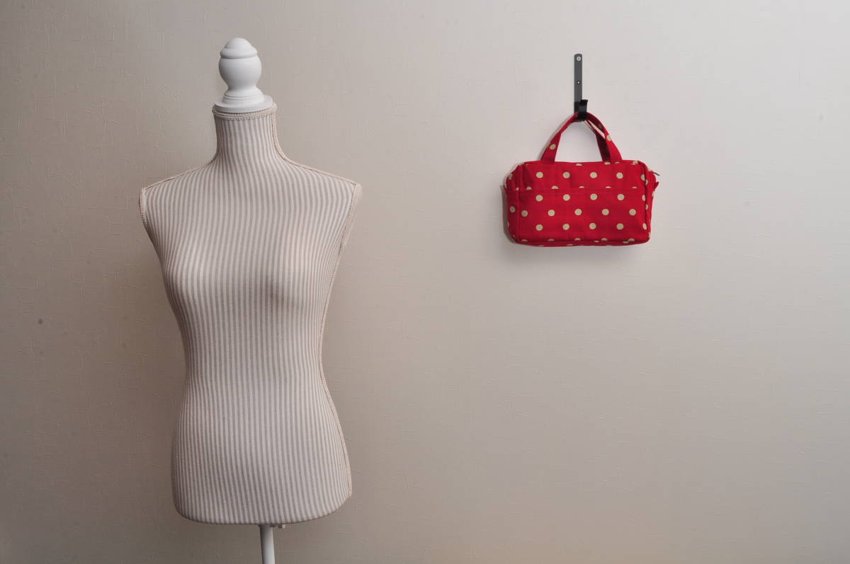 スポットシーレッド柄 の厚手生地(オイルクロスではありません)を外側に、キャスのコットンドット生地を内側にあしらって、作りました。オイルクロスではありませんので軽く独特の温かみをお楽しみください。もっと作って欲しい~というお声にお答えして再度作りました♪今回は写真でも分かっていただけるかと思いますが、外側にもポケットを付けていますので、デスクの上に置いて、ペンたてやアイフォン入れにも♪