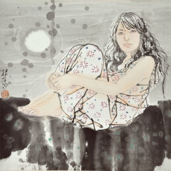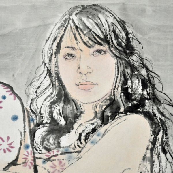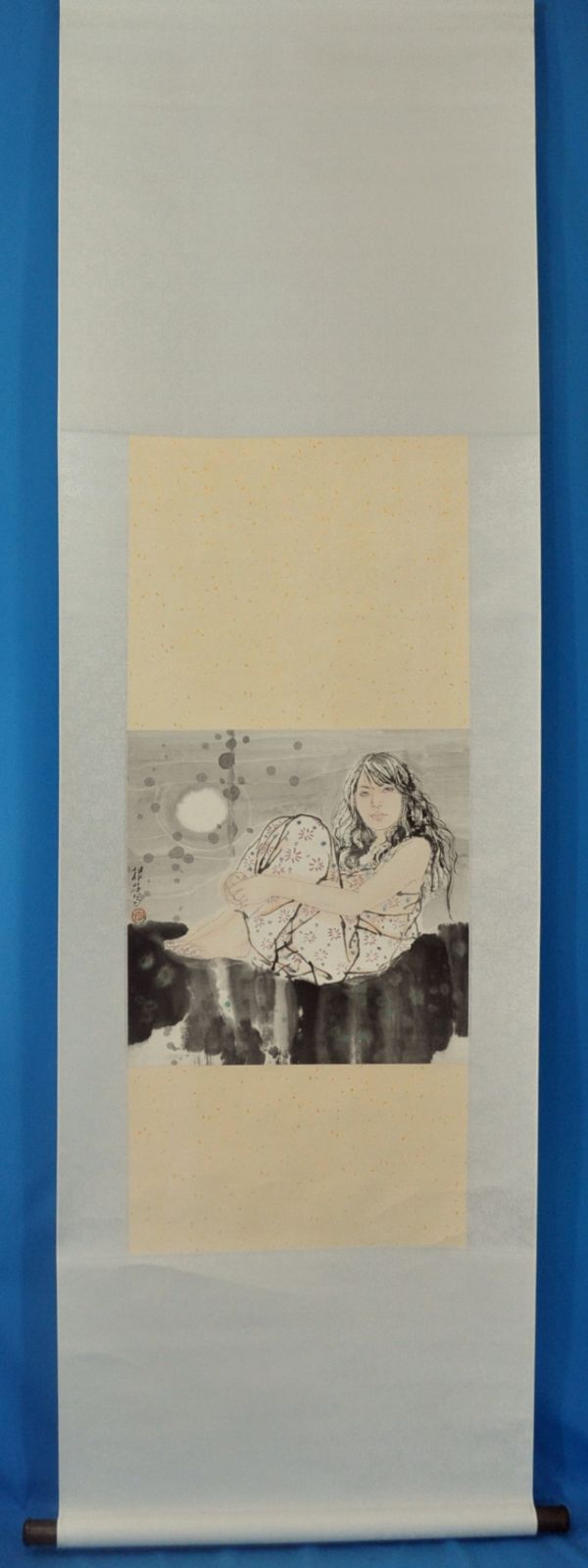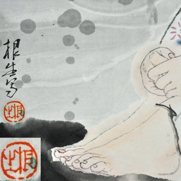 L22488 中国 銘・落款有 根生 作「美人画」掛軸 紙本 水彩画 肉筆 美人画 女性画 人物画 中国現代美術
