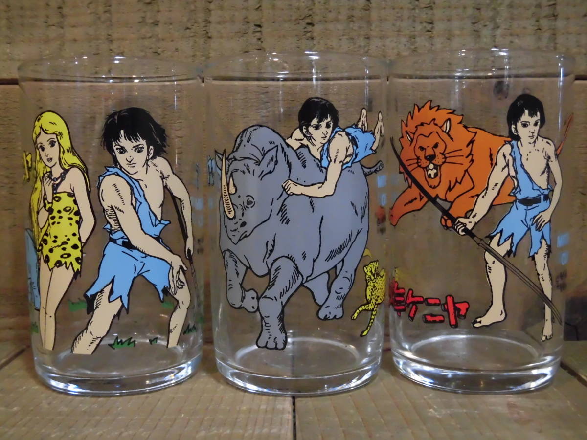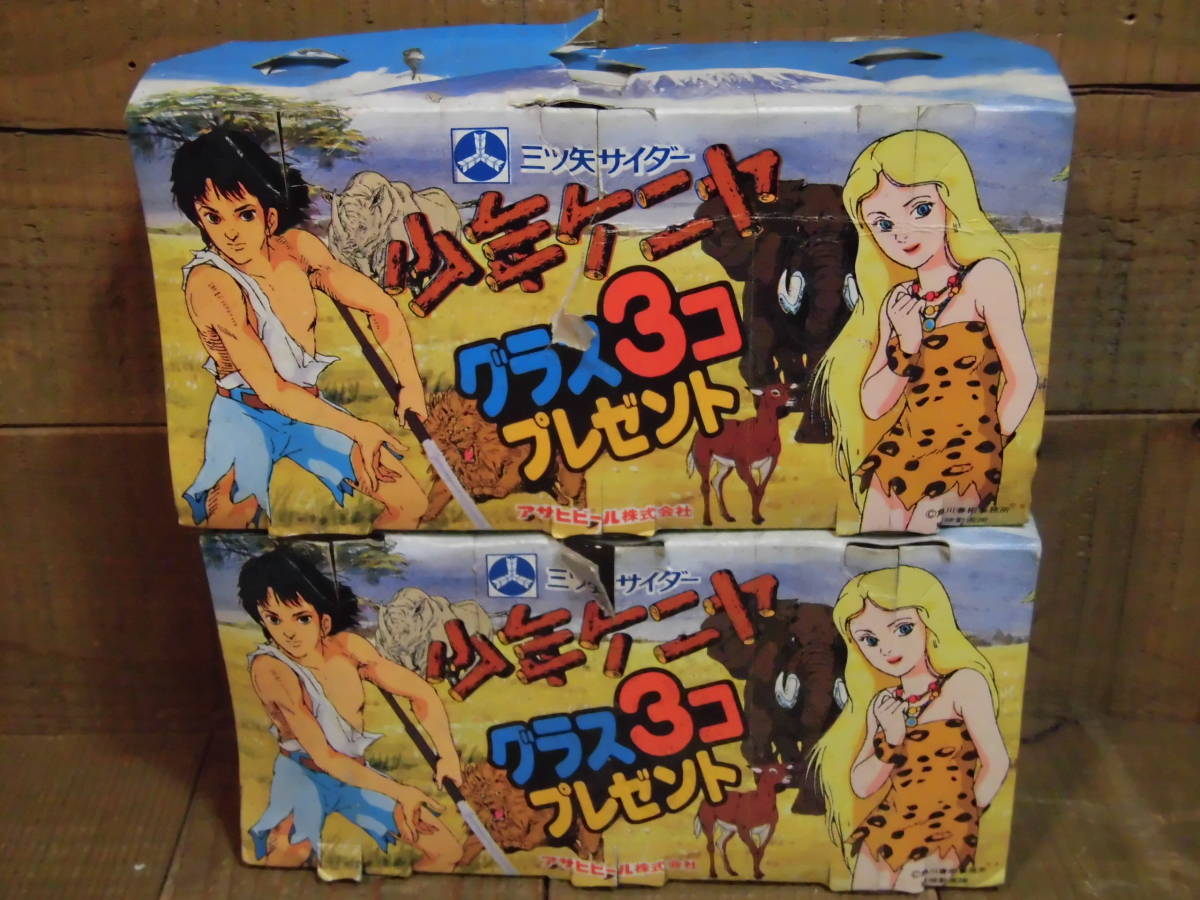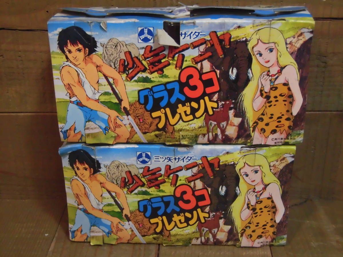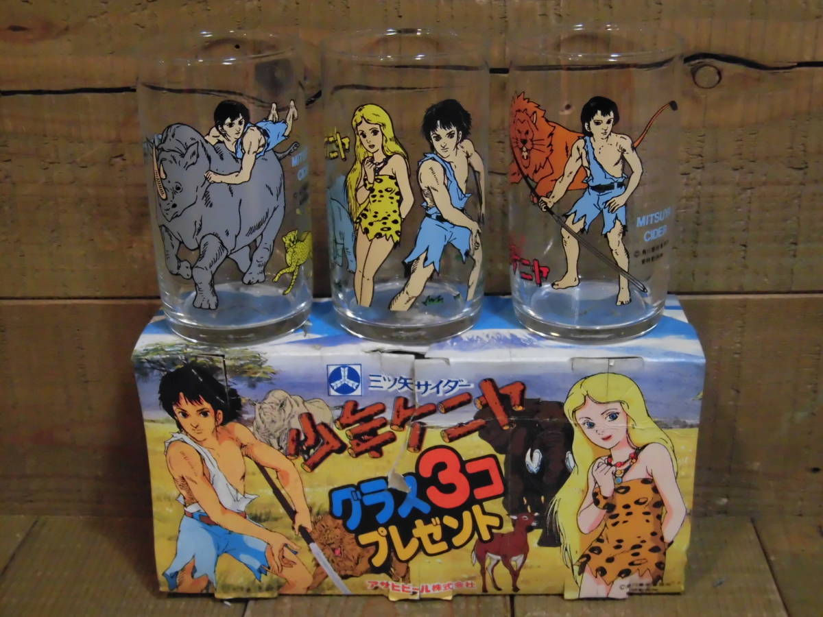未使用デッドストック品 少年ケニヤ 三ツ矢サイダー ノベルティーグラス3点セット 昭和レトロ 角川春樹事務所 東映動画 D13028