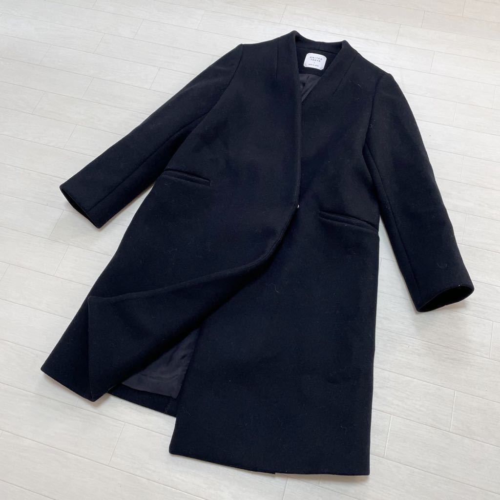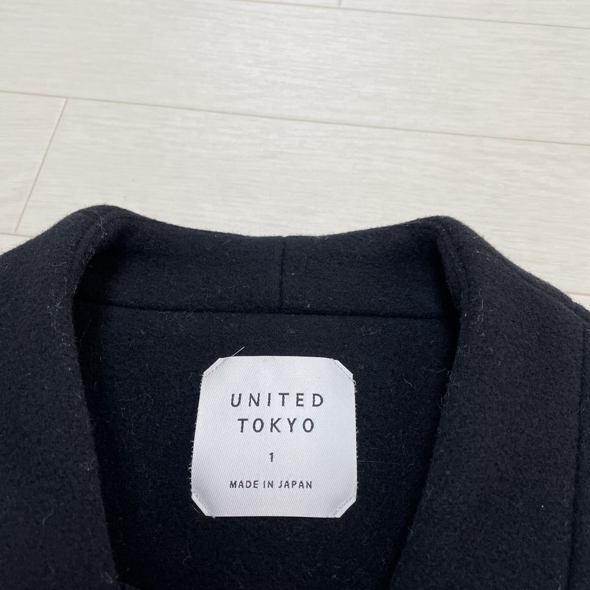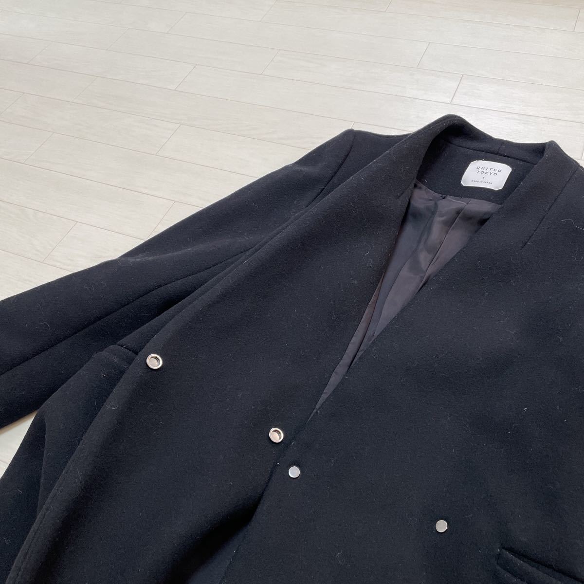 ユナイテッド トウキョウ UNITED TOKYO レディース ロングコート ノーカラーコート ウール 毛 ブラック黒 日本製 サイズ1