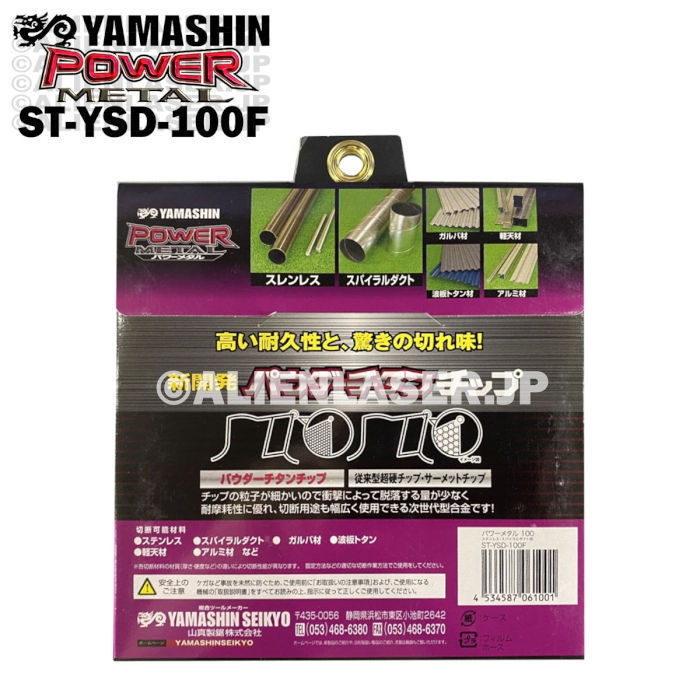 ステンレスパイプやダクトなどの切断にステンレス・スパイラルダクトの切断に適したチップソー。新開発パウダーチタンが実現した、驚きの切れ味と高い耐久性! チップ粒子が細かいので衝撃によって脱落する量が少なく耐摩耗性に優れ、切断用途も幅広く使用できる次世代型合金です。ST-YSD-100F外径100mm中心穴径20mm切削幅(刃厚)1.6mm刃数32P最高使用回転速度Nmax13,000rpmフッ素無適合機種集じんマルノコ※モニターの発色具合により、実際のものと色が異なる場合がございます。