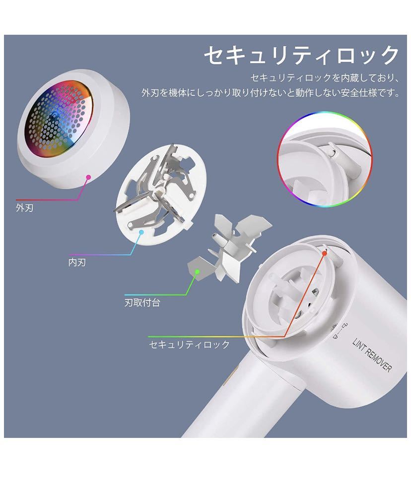 「高速回転・強力3枚刃で切れ味抜群」従来の3枚刃から、航空材にも使われている高品質のステンレス製刃に大幅改良したプロの毛玉取り。最大約9000回/分のパワフル高速回転で広範囲の毛玉を短時間で取ることができます。家庭でプロのお手入れができ、今まで出来なかったソファーなどの大型家具も楽に毛玉を取ることができます。