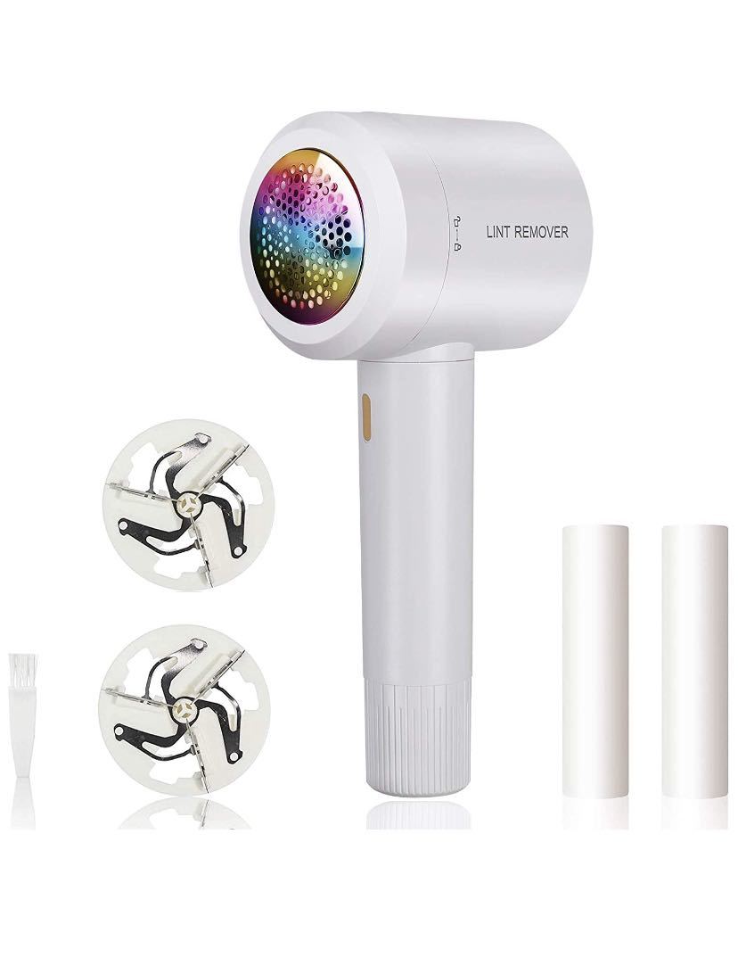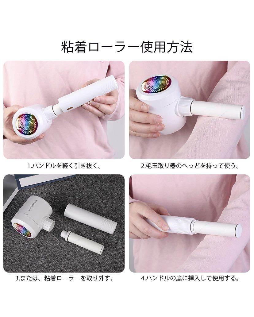 「お得なパック・充実の付属品」真っ白の外装から始まり、本体を掃除するのに便利なブラシ。長く使ってほしいから「高品質替刃」を付属品としてお付けしました。軽く転がすだけで毛やほこりを付着させ、衣類をきれいにできる粘着ローラー2個、更にUSBケーブルと日本語取り扱い説明書も付属して、至れり尽くせりのセット品で、洋服好きな人へのプレゼントにすると喜ばれそうです。