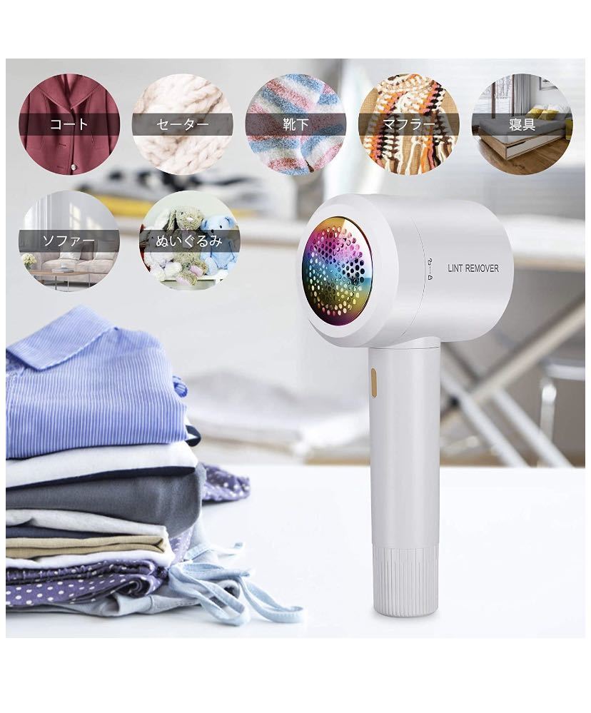 「様々な生地に対応」生地の種類と毛足の長さによって、セーター、レギンス、靴下などの衣類から、カシミヤウールやコットンなどの繊細な生地、さらには毛布や寝具などの家具・室内装飾品まで、どんな生地にも対応できます。生地本来の風合いを残しながら毛玉だけを取り去ることができます。長く大切に着たい洋服をまるで新品のように蘇らせてくれ、大人の身だしなみに欠かせない毛玉取り器です。