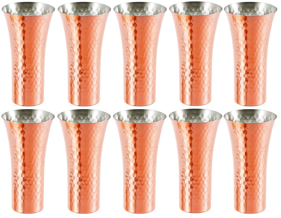 ☆銅製槌目紋様ビアカップ(約380ml)10個ミラー仕上日本製新品
