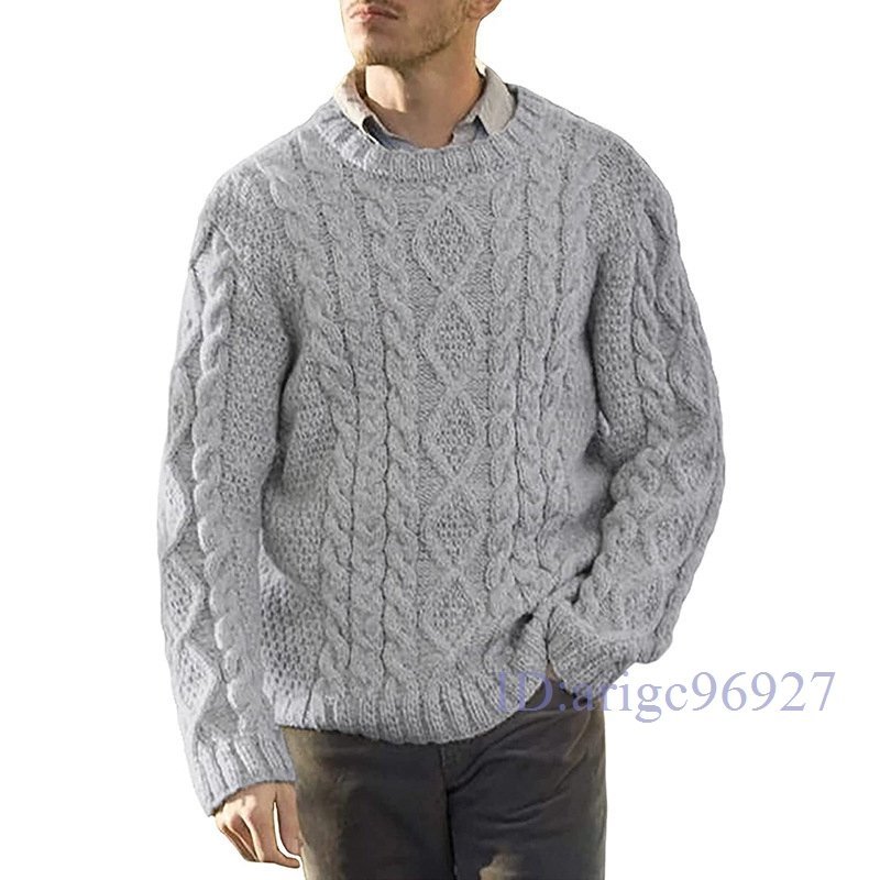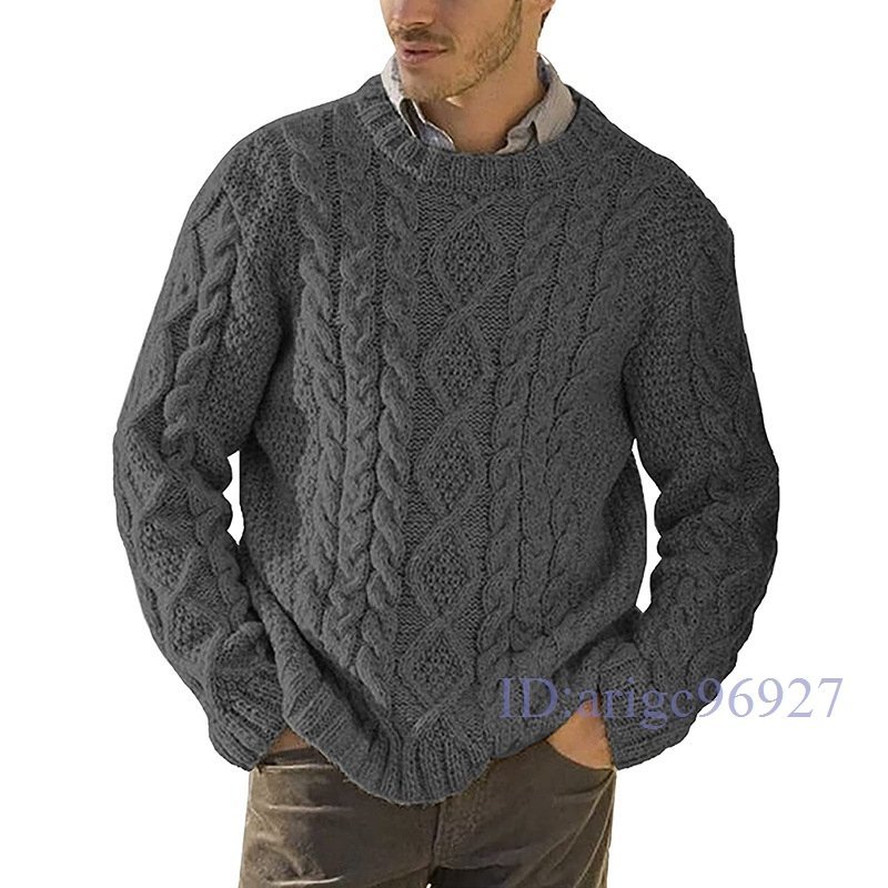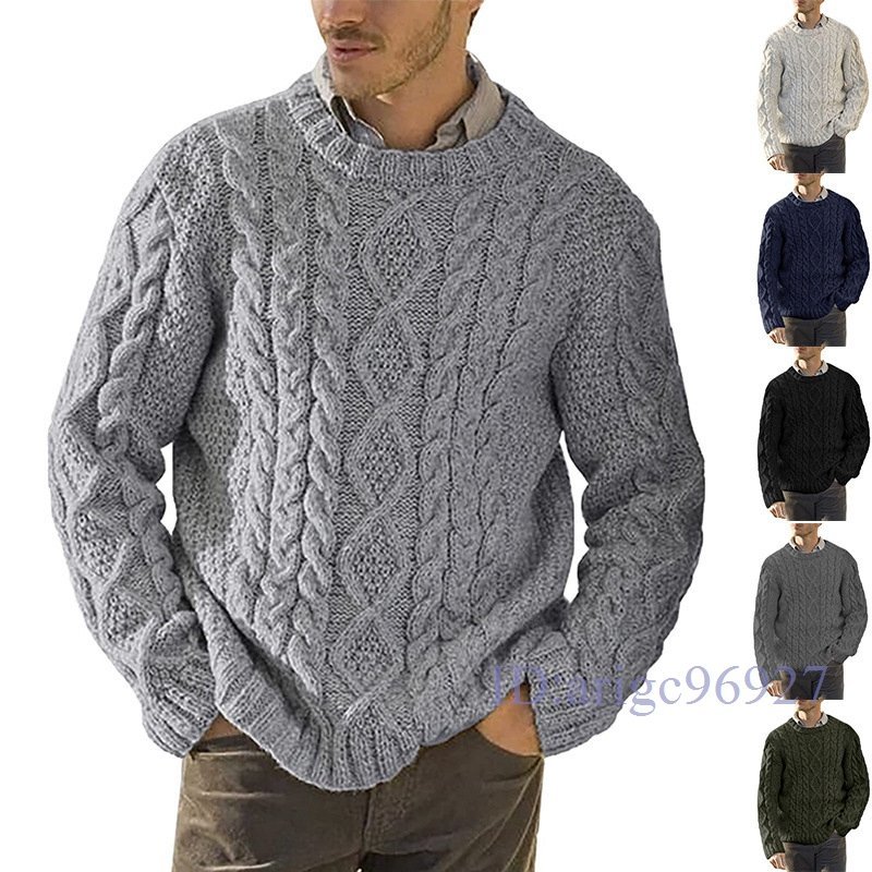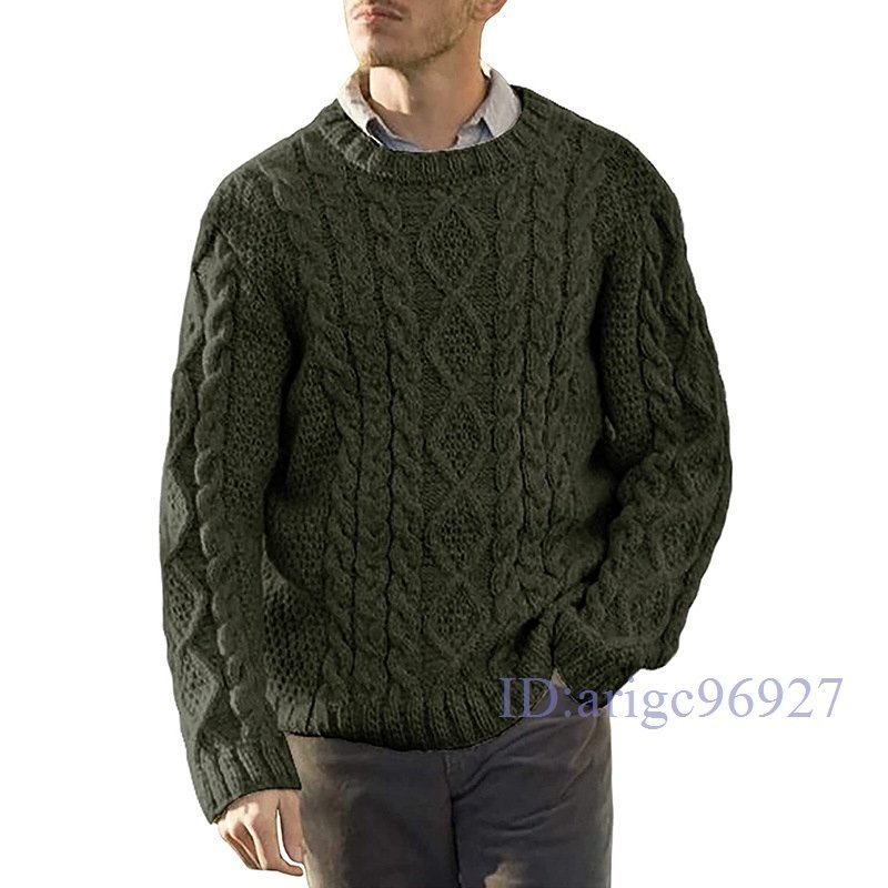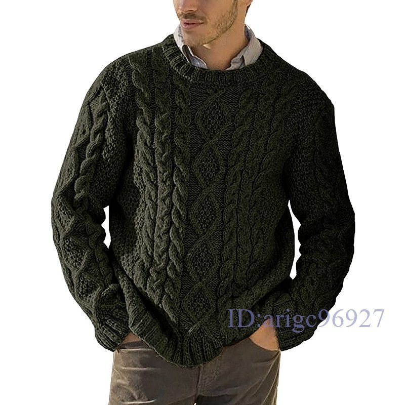 Y758☆新品セーター メンズ 冬 おしゃれ ニットセーター 長袖クルーネックインナーセーター ケーブル編み ニットソー シンプル暖かい