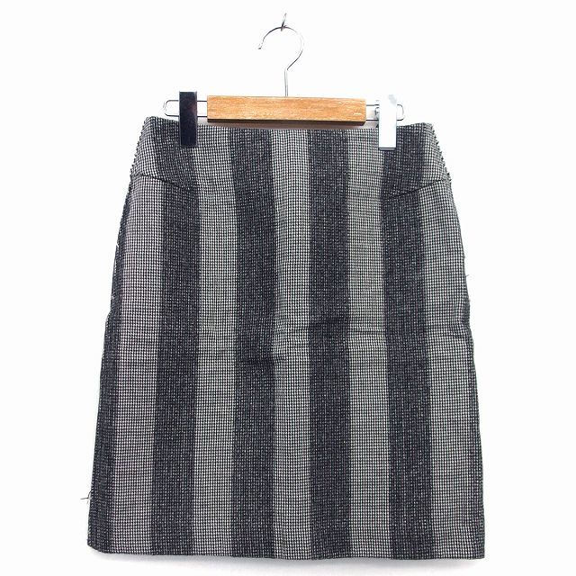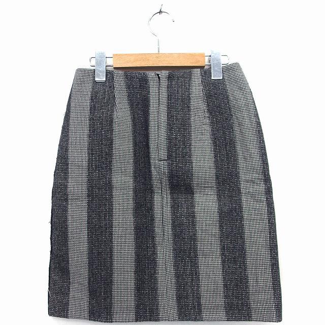 イエナ IENA 台形 スカート ミニ 膝上 ストライプ 千鳥格子 柄 ウール 毛 36 グレー 灰 /HT5 レディース