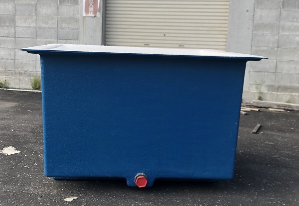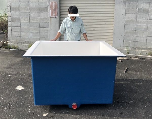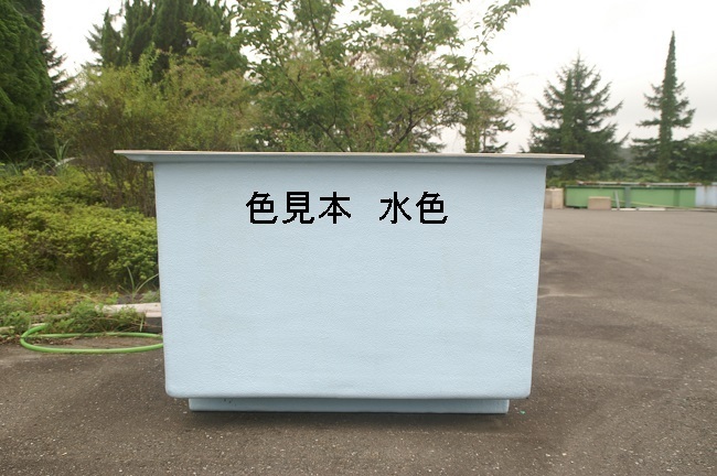 ※外色の青は在庫切れで水色になります。画像の色見本をご確認ください。自社製作のFRP製の角型の大型水槽です。水深80cmシリーズの1200リットル水槽です。内面はゲルコートと呼ばれる硬くて耐候性に優れた樹脂でコーティングされておりキズが付きにくく、また鏡面仕上げとなっており掃除も用意です。底部には10cm角の脚が2本通っています。外側から取り外し可能なプラスチック製のねじ込み式の排水栓を取り付けてあります。サイズ(内寸):長さ1.25m×幅1.25m×深さ0.8m 容量(満水時):約1200リットル 重量 :約80kg付属 :サンコーフィッティング40A注意事項(1)4tユニックのチャーター便での配送になります。配送経路に無理が無いかご確認ください。(2)ユニックによる荷下ろしに十分なスペースをご用意ください。(配送は安全な荷下ろし可能な場所までとなります)(3)チャーター便での直送の為、指定日(平日のみ)での確実な荷卸しが必要です。(4)沖縄県、離島は対象外(5)漏水検査を行うため、ご入金確認から出荷までに数日~1週間程度お時間をいただく場合あります。(6)製造工程で水槽内側に1円玉程度の浅いくぼみが残る事がありますが強度には問題ありません。ご了承ください。水槽内側の色の変更は受注生産となります。お手数ですが納期や価格等、詳細につきましては直接実店舗のエコロ・プラント株式までお問い合わせ下さい。