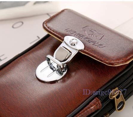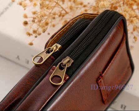 R637☆新品メンズ レザー ファニー パック バッグ 携帯電話 ベルト ポーチ ヴィンテージ風 コインケース スマートフォン レッド