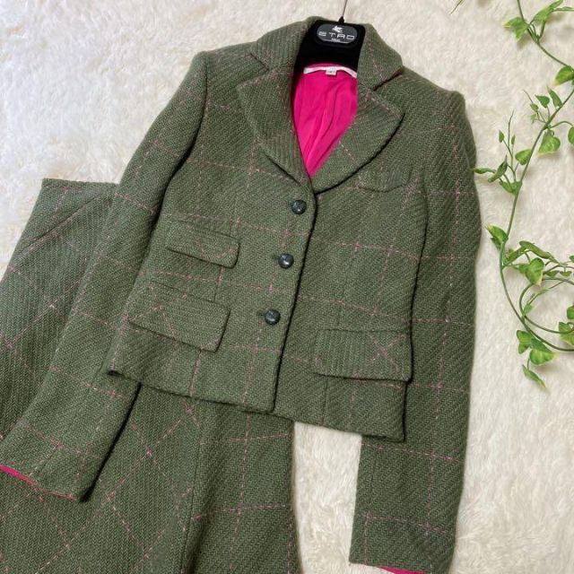 表情のあるウールツイード生地に変形アシンメトリーのスカートが素敵なスーツです(^^)