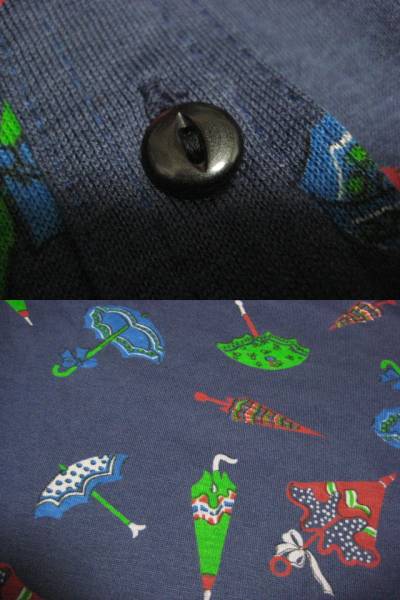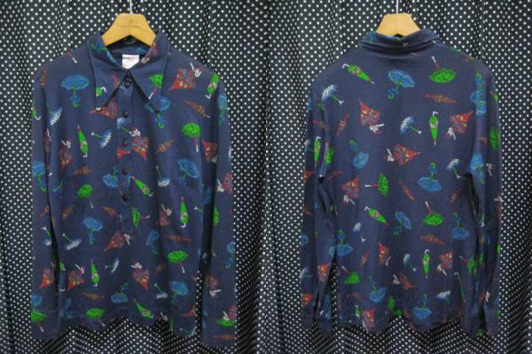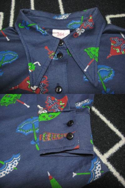 TGLのスウェーデン製 TGL 傘柄ハーフボタンブラウスです。スェーデン製、表記サイズ44(USA16)とあります。(カテゴリはLで出品しています。)着丈(衿部分除く)61cm、身幅49cm、裾幅47cm、肩幅36.5cm、袖丈肩から58cm、脇から42.5cmです。素人採寸ですので多少の誤差はご容赦下さい。素材はVINCEL/COTTONとあります。お色はネイビー地に色とりどりのアンブレラ柄になります。6つのフロントハーフボタンで襟が長め、ボタンはキャットアイボタンになっていてレトロでお洒落です。ほとんど着ていませんので状態いいです。 | |||