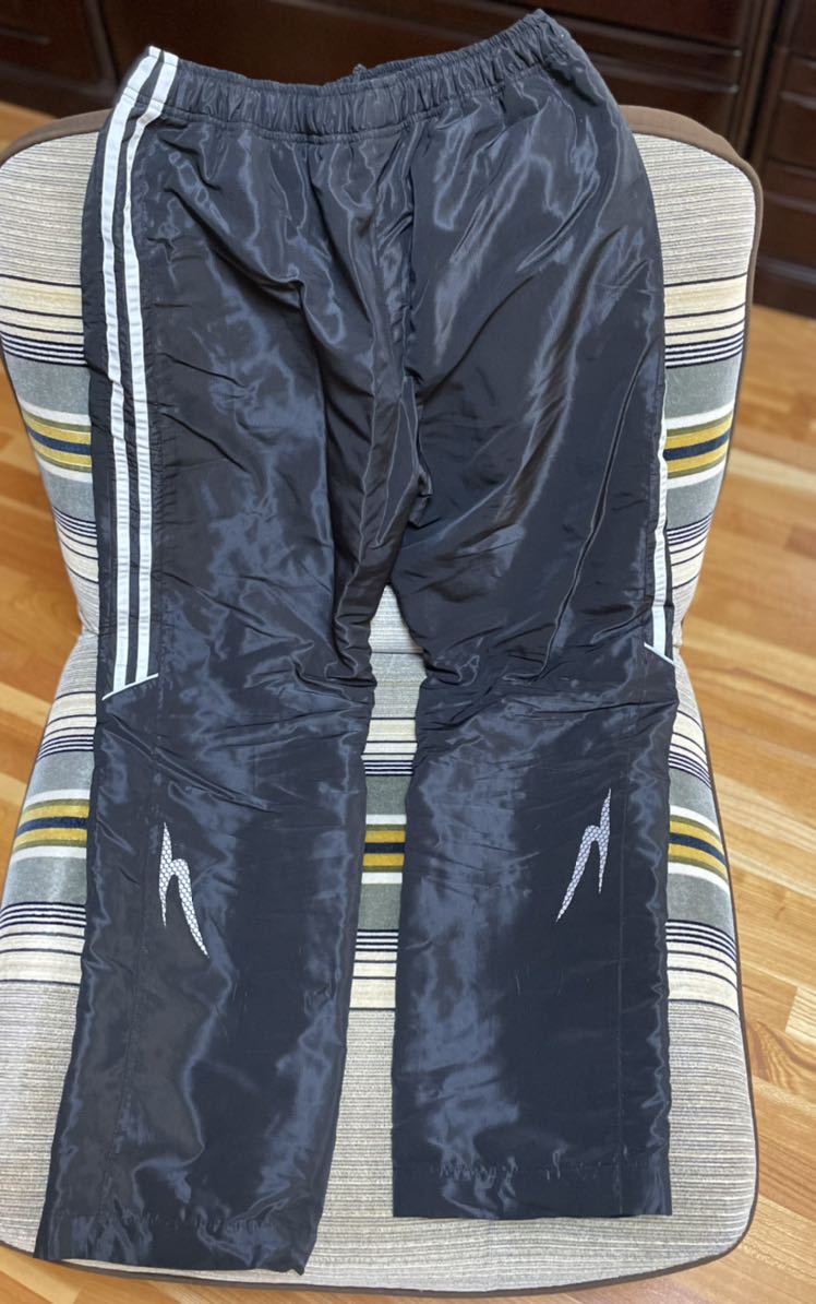 このジャージは、数年前に購入しました。右足側の中央辺りにナイロン生地にちぃさい穴が有ります。なのでやや傷、汚れ有りにしました。股下74センチです。サイズは、写真に上げてますのでノーリスク、ノーリターン、ノークレームでよろしくお願いします。