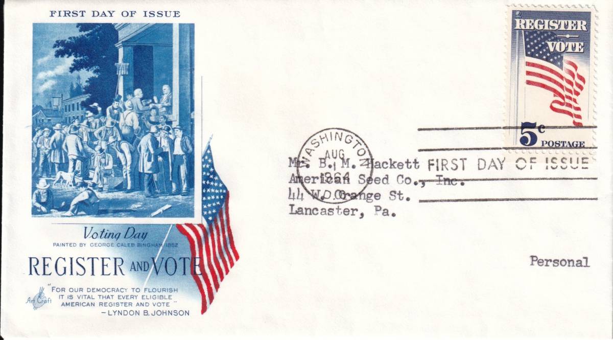 【FDC】星条旗、投票推進運動(1964年)(3)(アメリカ)実逓 t2514