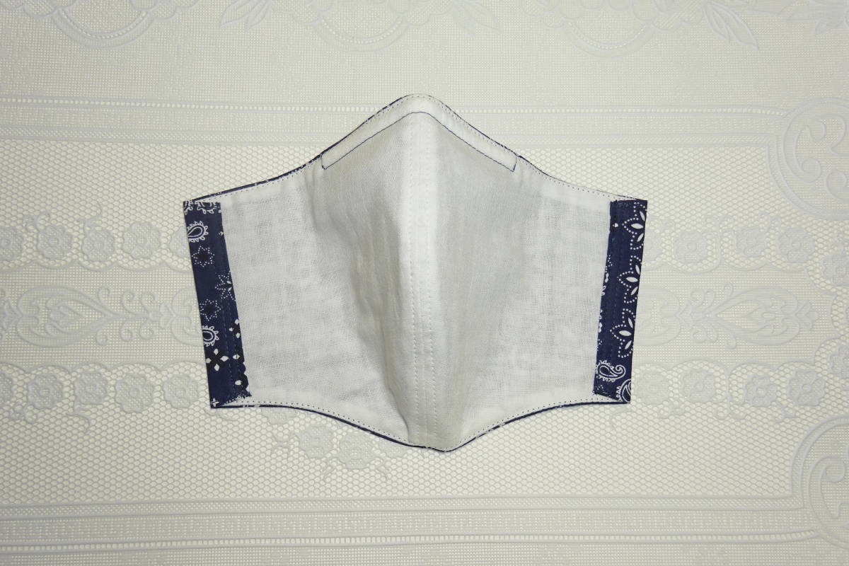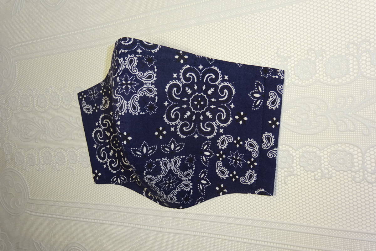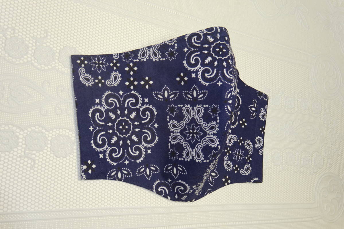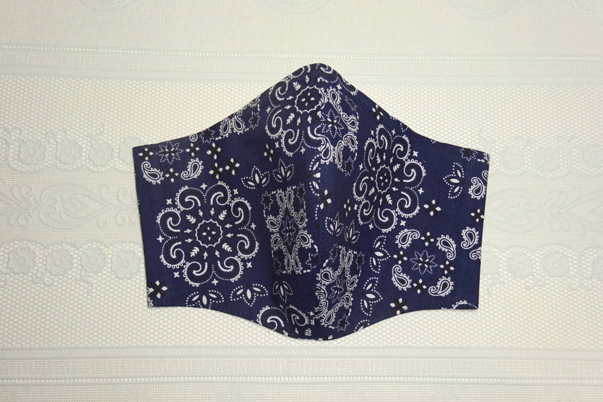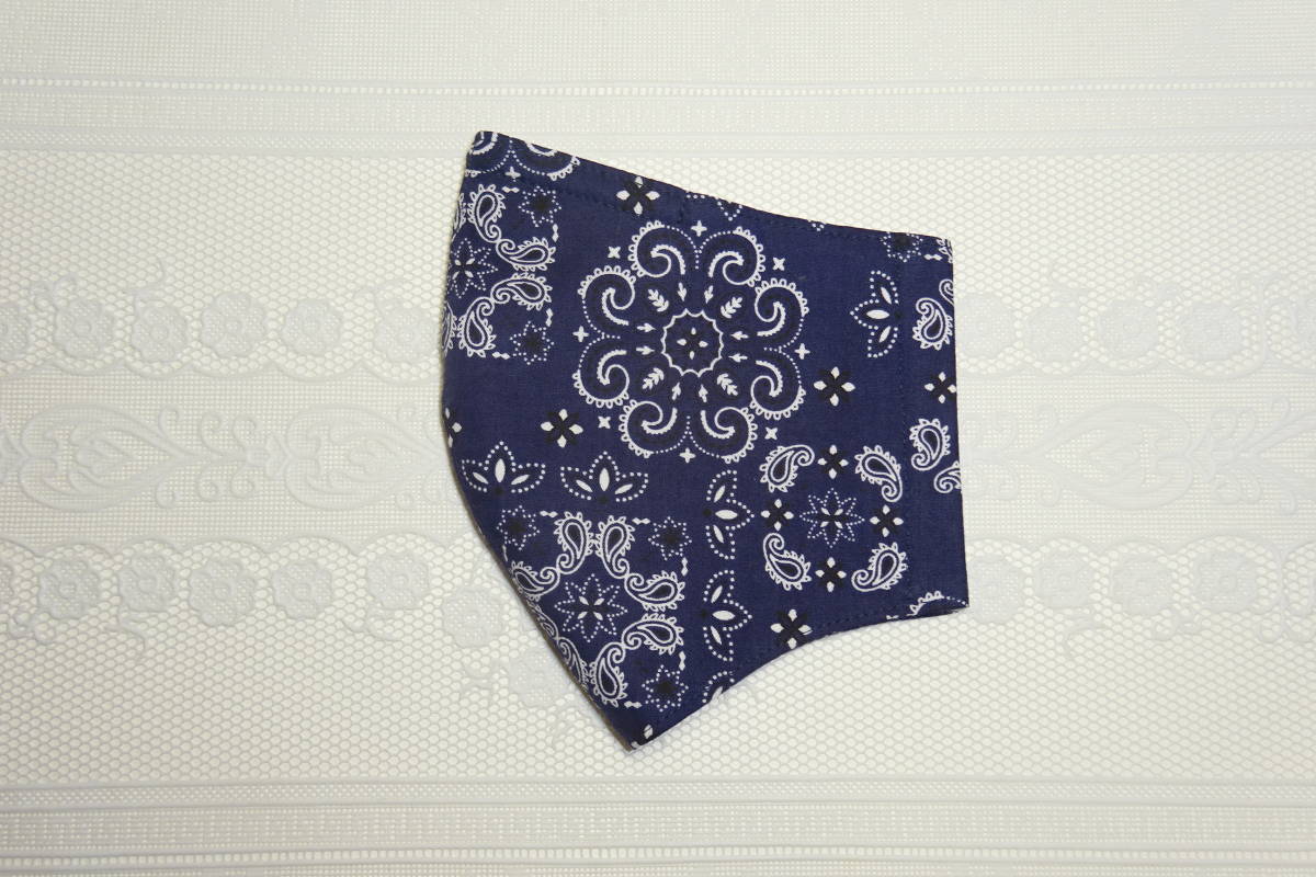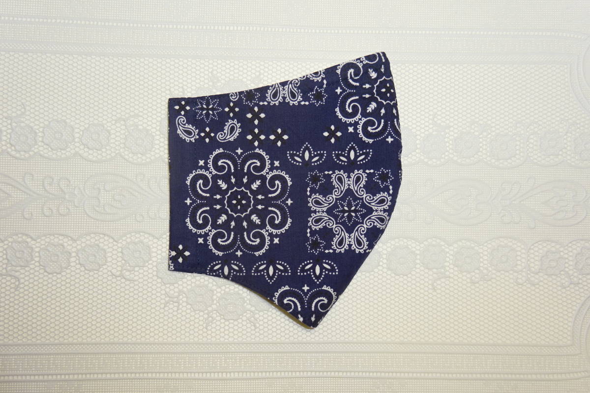 Lサイズ ネイビー ペイズリー柄 バンダナ柄 ノーズワイヤー入り インナーマスク ハンドメイド