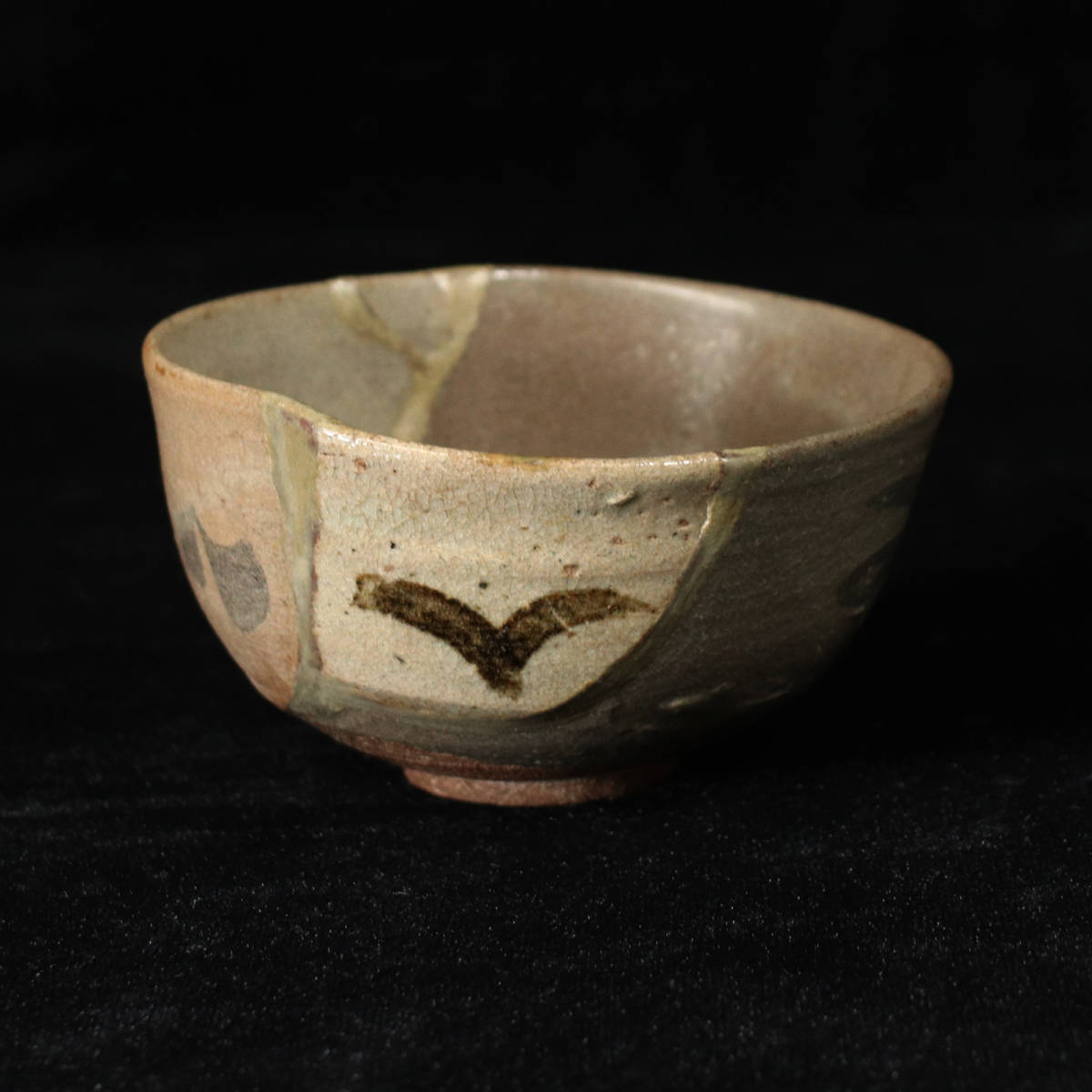 江戸前期に作られた古唐津の陶片を繋ぎ合わせ一つの茶碗とした、