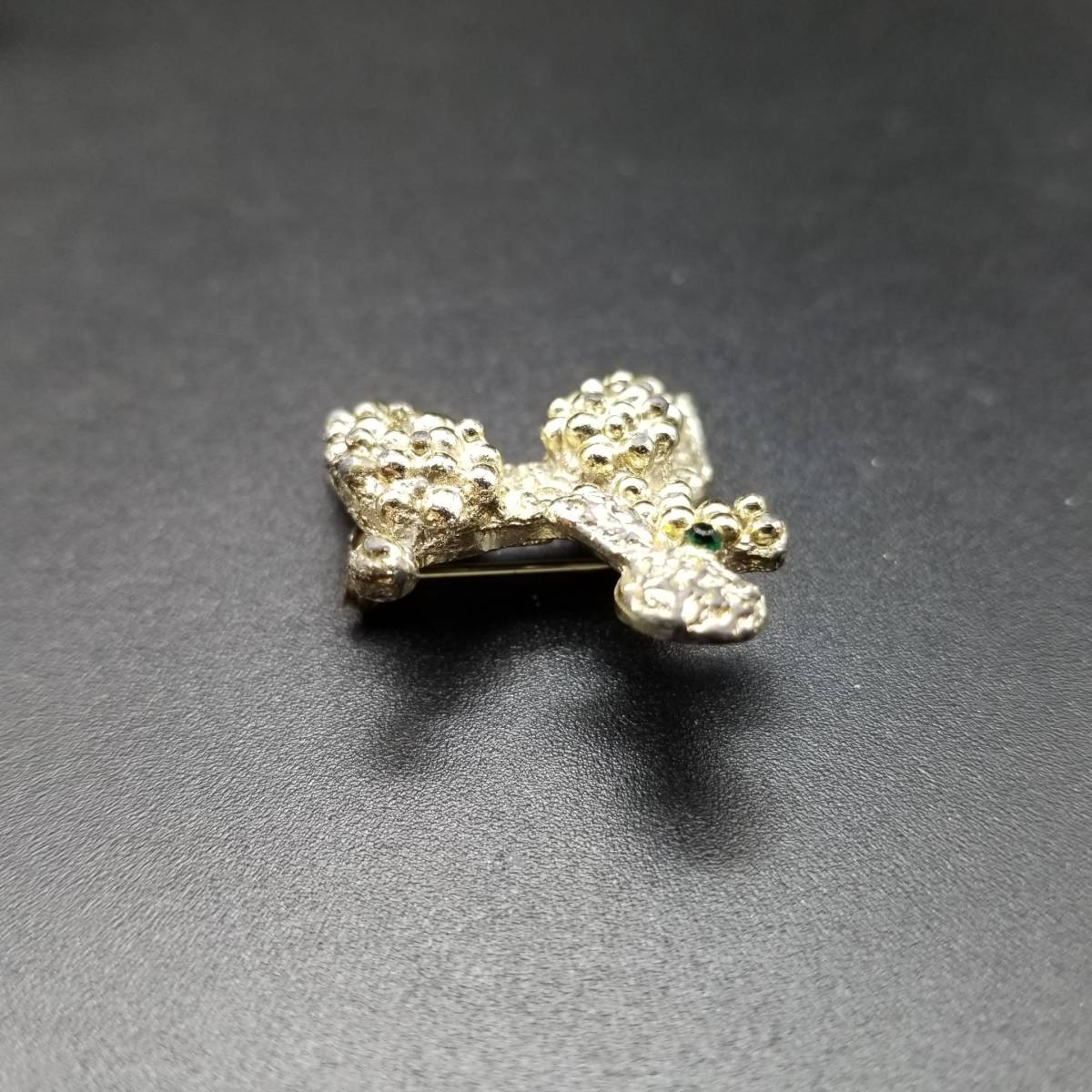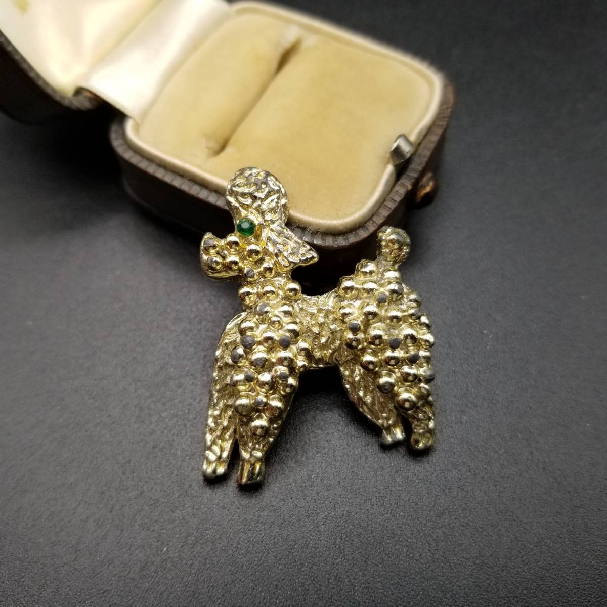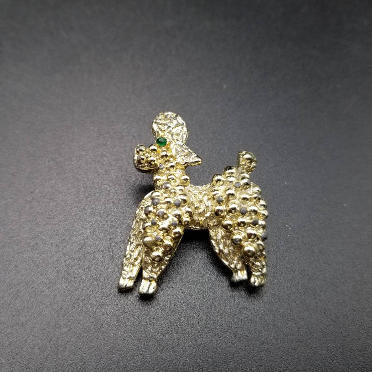 ビンテージ ブローチ トイプードル 犬 緑 ストーン ゴールドトーン アールデコ 昭和レトロ コスチューム ジュエリー イミテーション AJP5