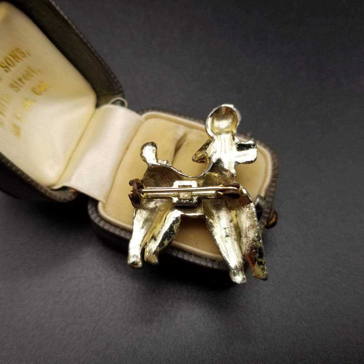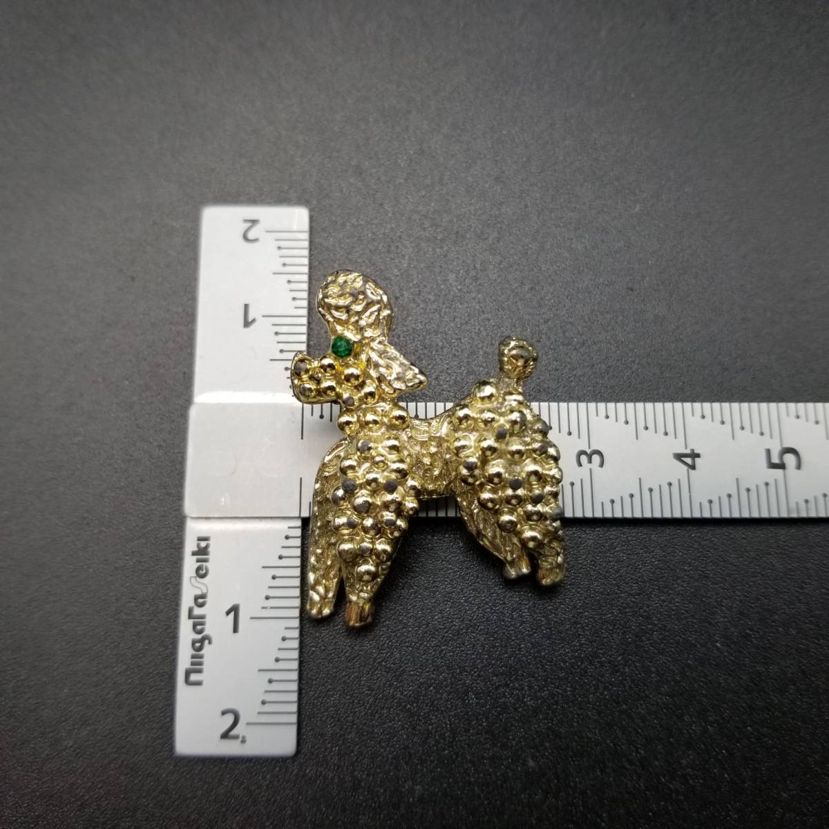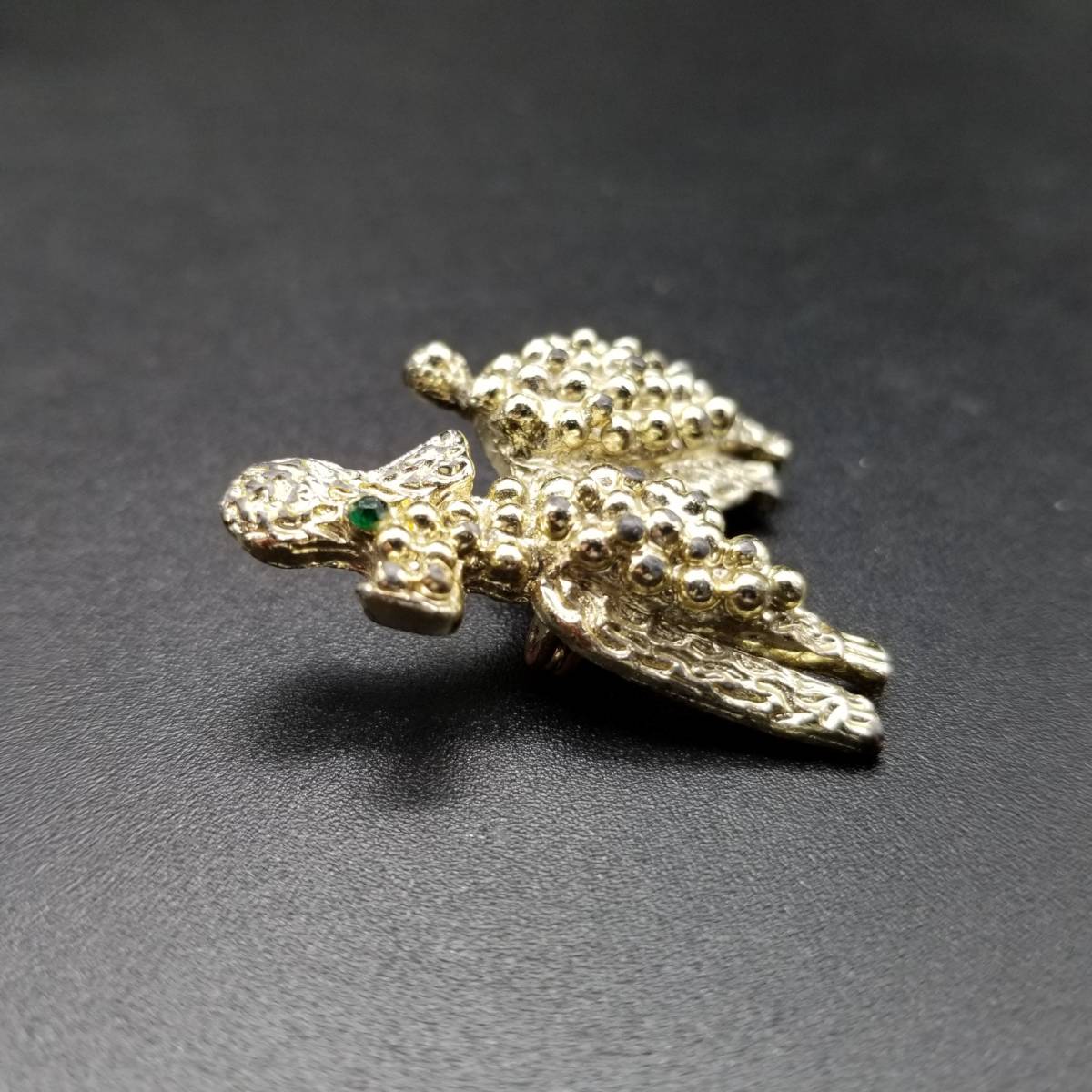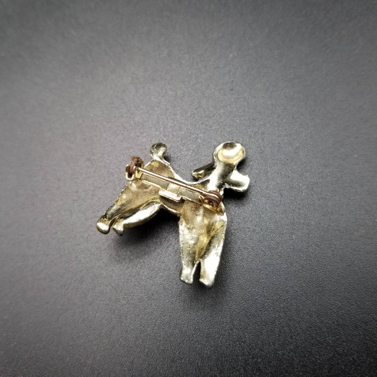 ビンテージ ブローチ トイプードル 犬 緑 ストーン ゴールドトーン アールデコ 昭和レトロ コスチューム ジュエリー イミテーション AJP5