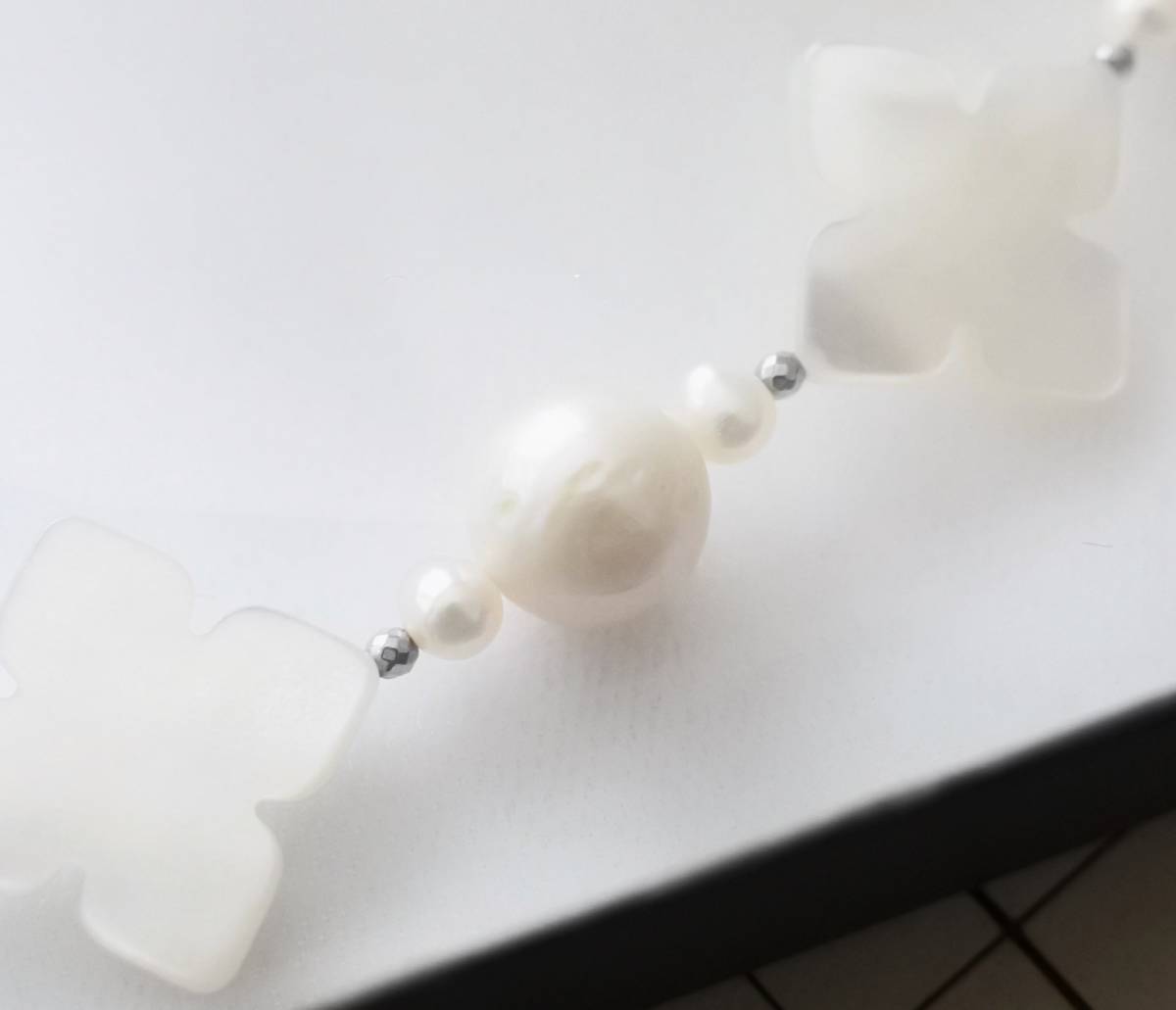 ネックレス 未使用品 淡水真珠 ヘマタイト シェル レディース ファッション小物 アクセサリー