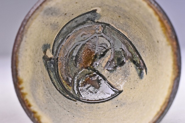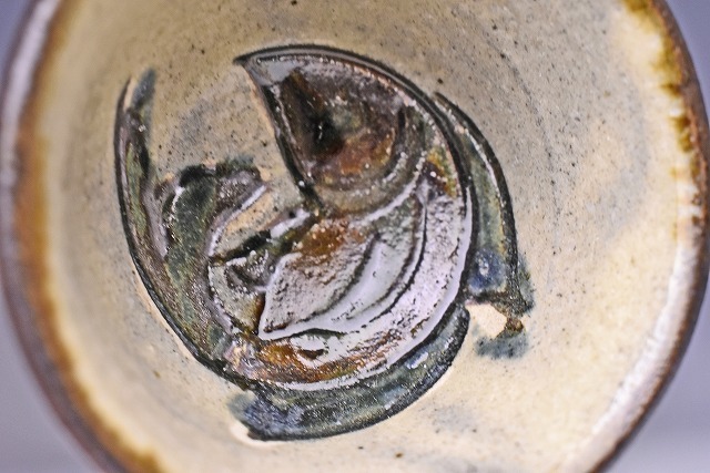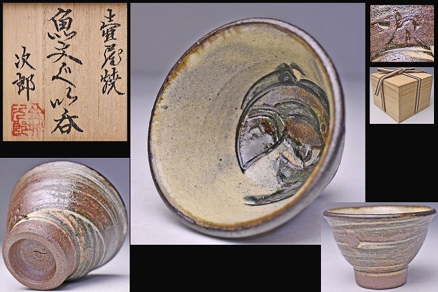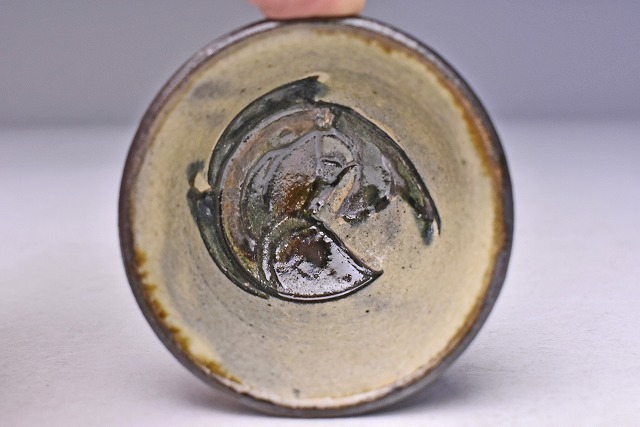 金城次郎 ★ 壺屋焼 魚文 ぐい呑 ★ 共箱 ★ 人間国宝 ★ 見込みに泳ぐ魚文が良い景色の逸品 ★ 壺屋3人男 ★ 新垣栄三郎 小橋川仁王 ★2