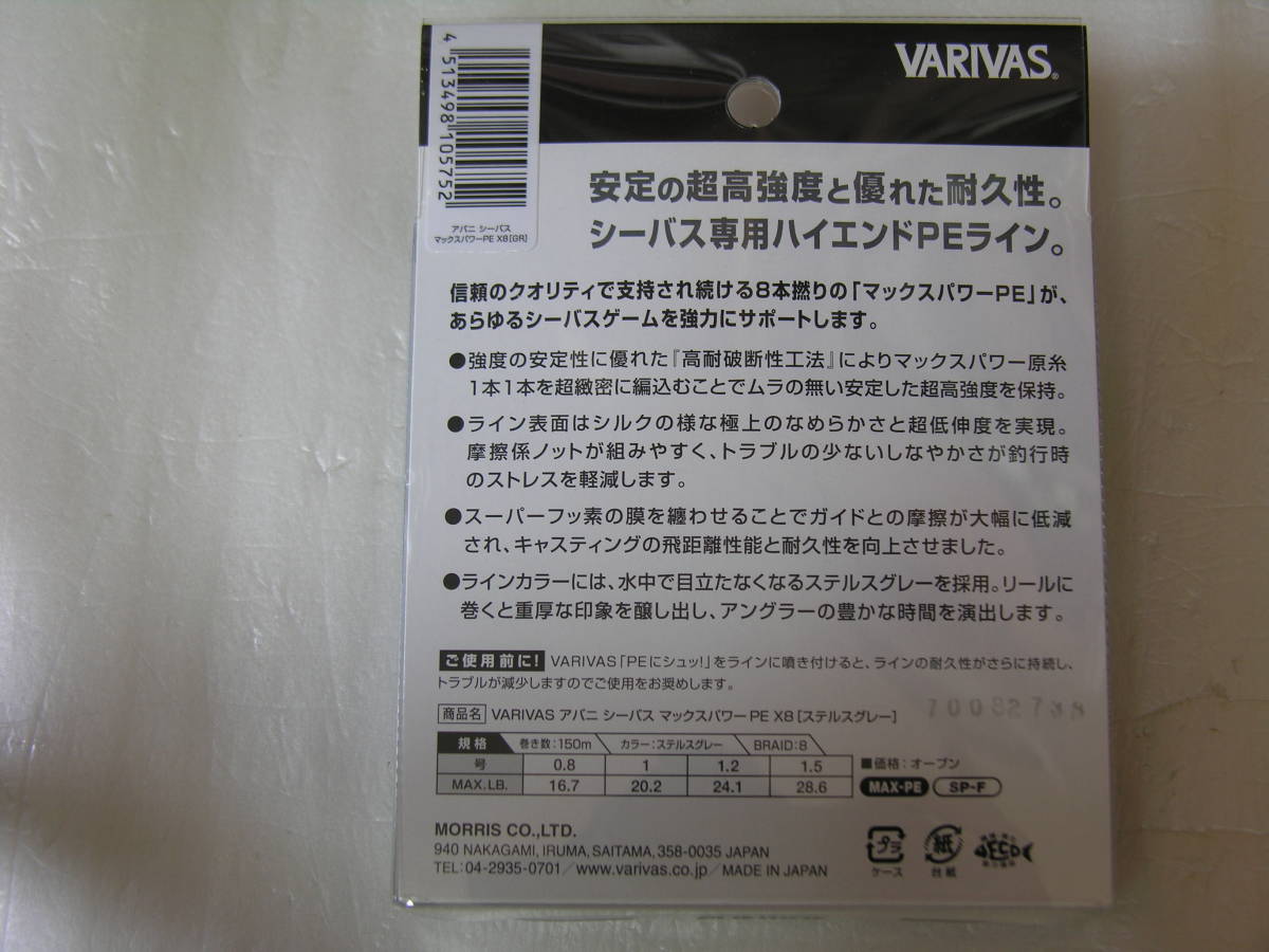 バリバス アバニシーバス マックスパワーPE X8 1号150m ステルスグレー