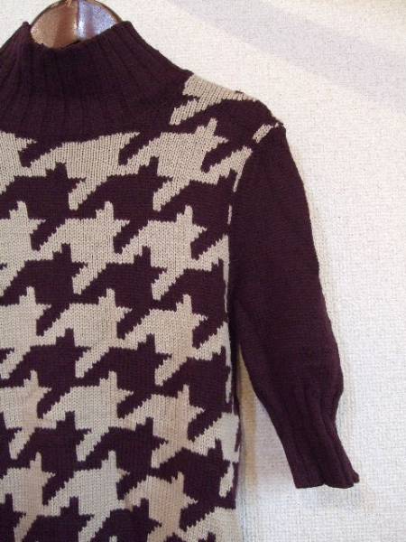 商品紹介 | 紫×ベージュの千鳥格子柄ニットです。 5分袖でタートルの形です。 後ろは紫1色のみです。 素材:毛100%(イタリア製素材使用) |