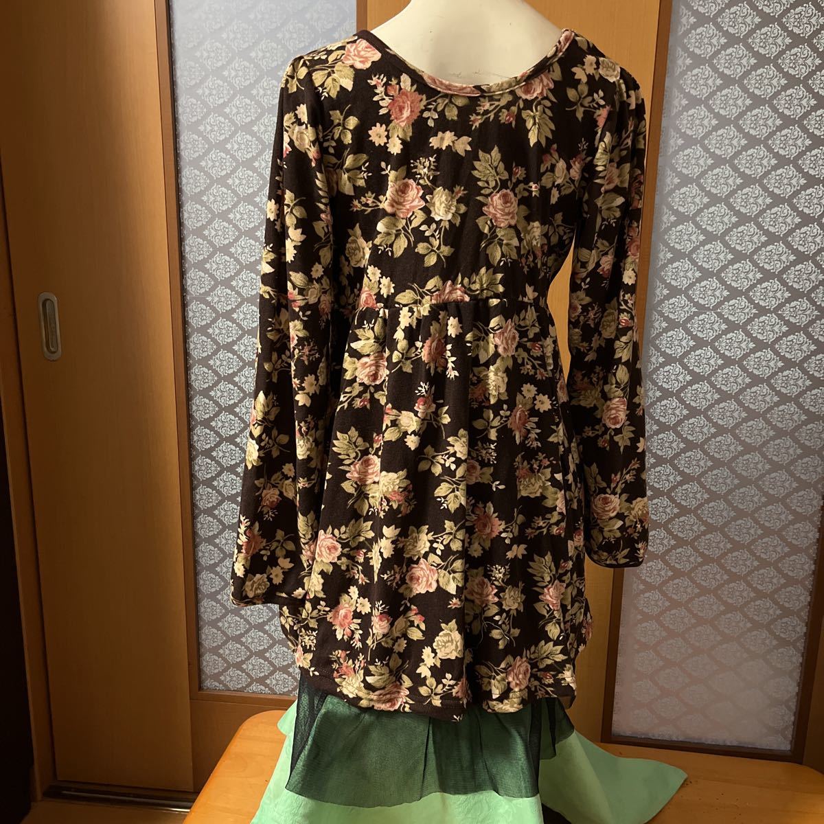 ○ 薔薇ワンピース レディース ミニワンピース 茶色 新品同様カットソー チュニック