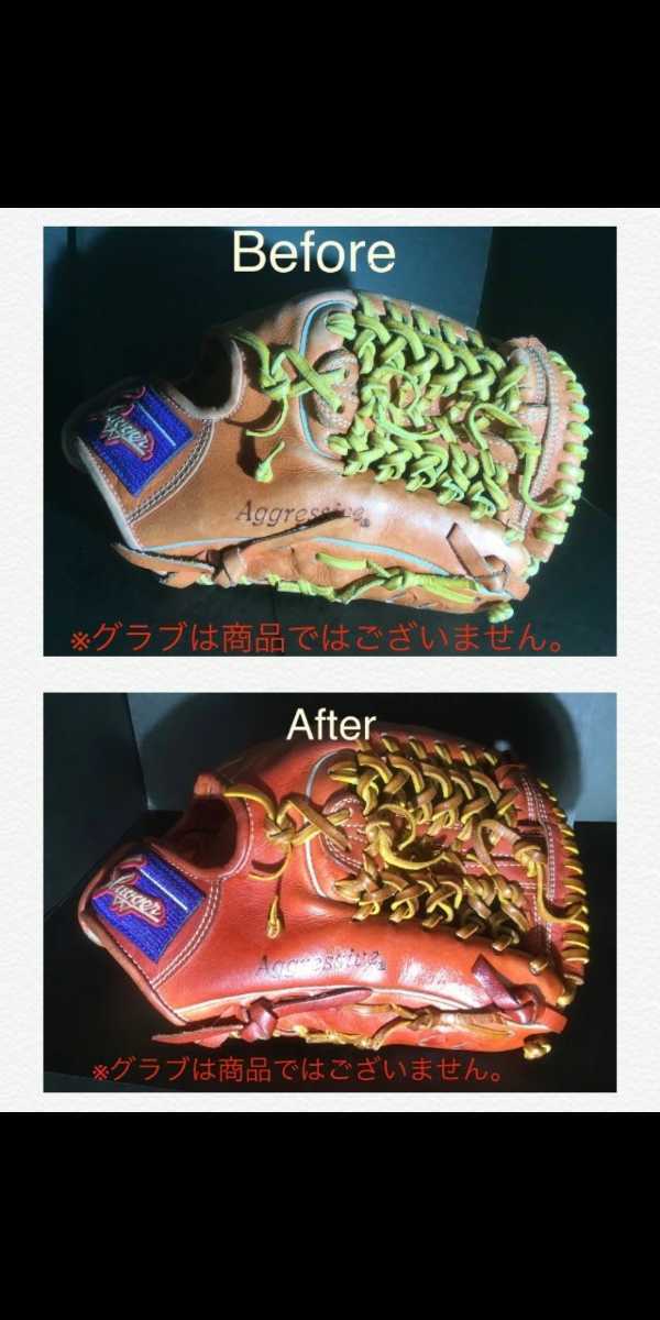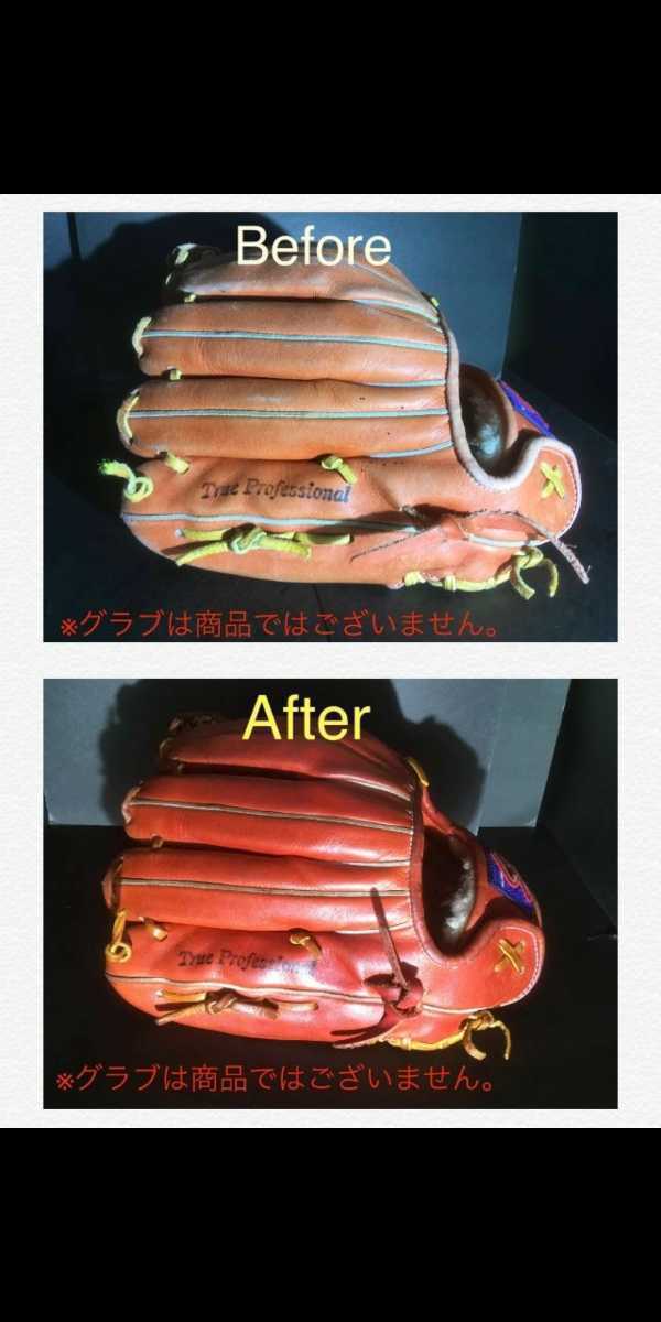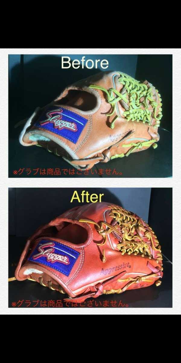 写真2枚目からはオイルを塗る前のグラブがBeforeで塗った後のグラブがAfterになります。※写真に写っているグラブは商品ではございません。