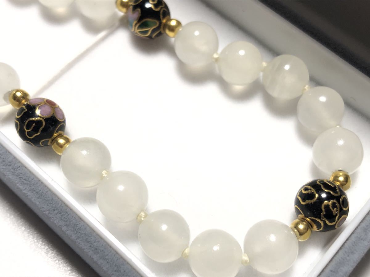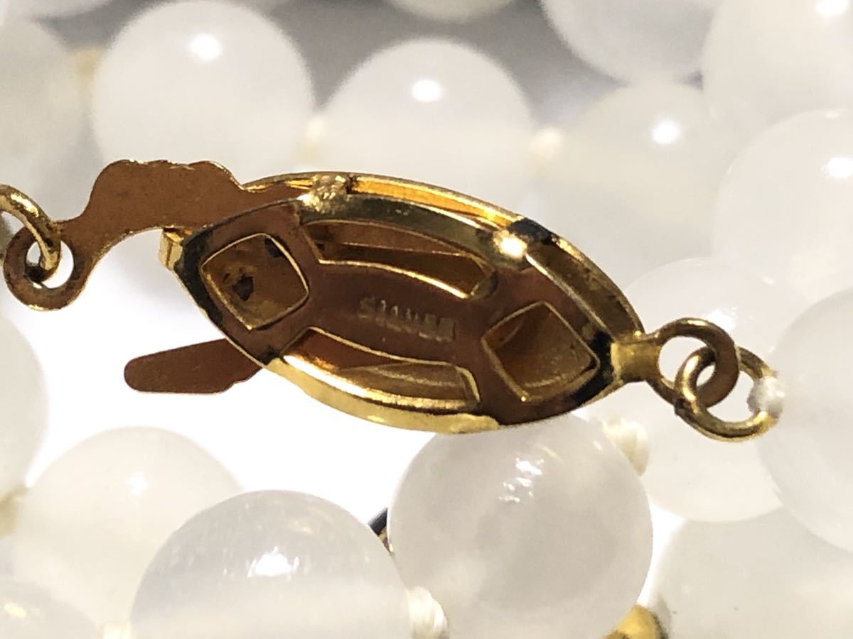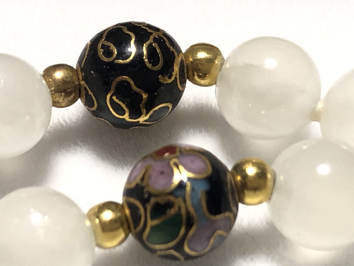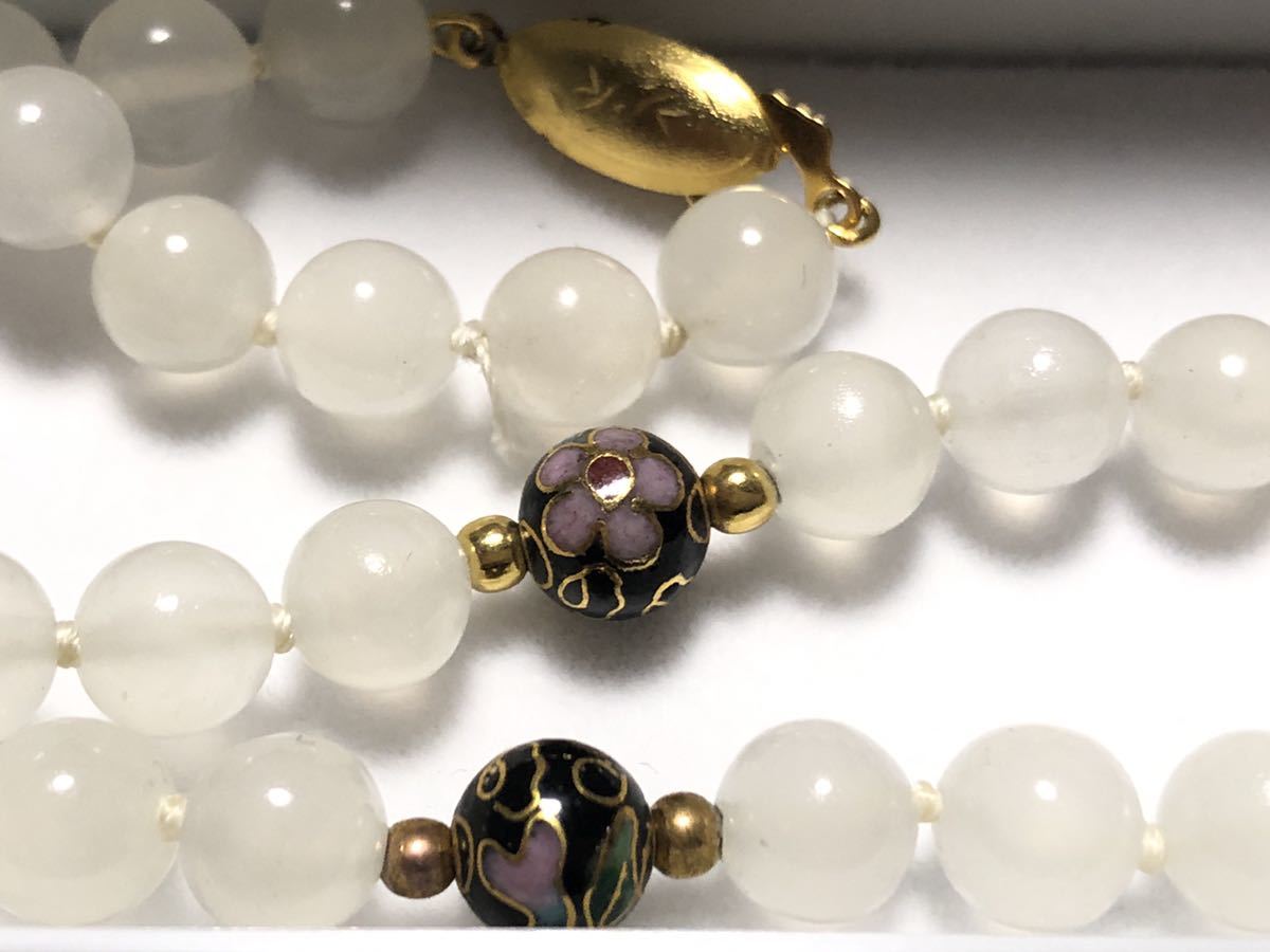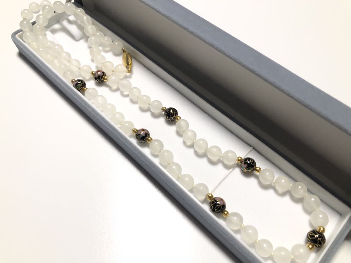 ホワイトレースアゲート、七宝焼を使用した、ロングネックレスです。金具部分にはSILVERの刻印があります。美品です。