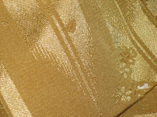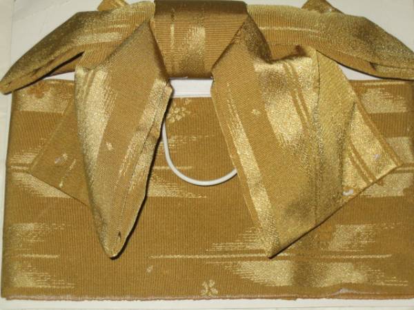 女性yukata用、地紋柄結び帯 枯草 ポリエステル  新品(織り地紋柄ありです。波状の写りはレンズの光学的ないたずらで現品にはありません、また薄く濃く写っている場合もあります)、胴部--帯巾約16,5cmx長さ約130cm、リボン部は横に約30cm。見た範囲で汚れないと思いますが、着用に差し支えない薄汚れ(多分ない?)はあってものお値段で出品です。