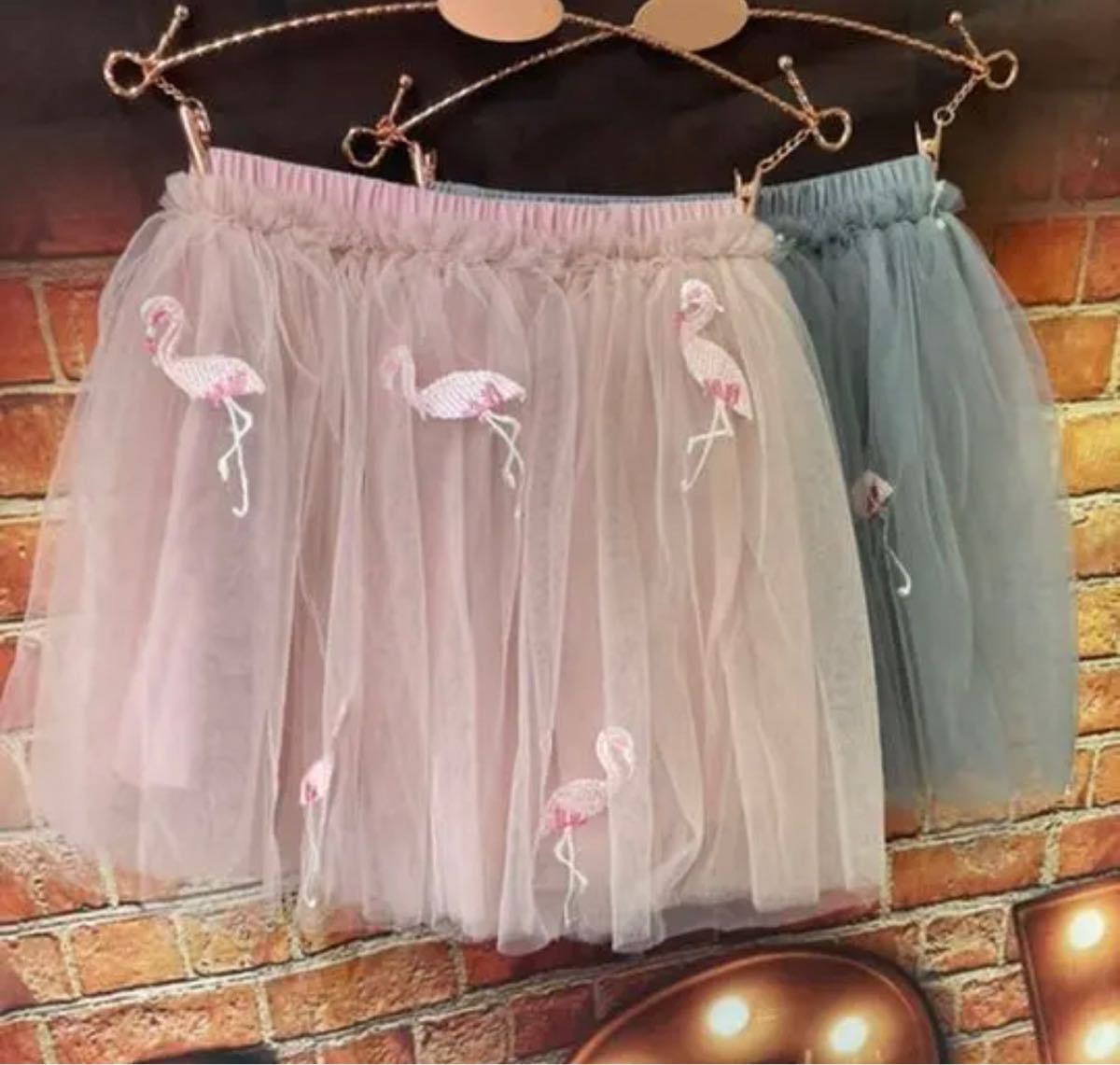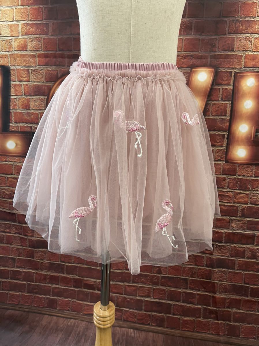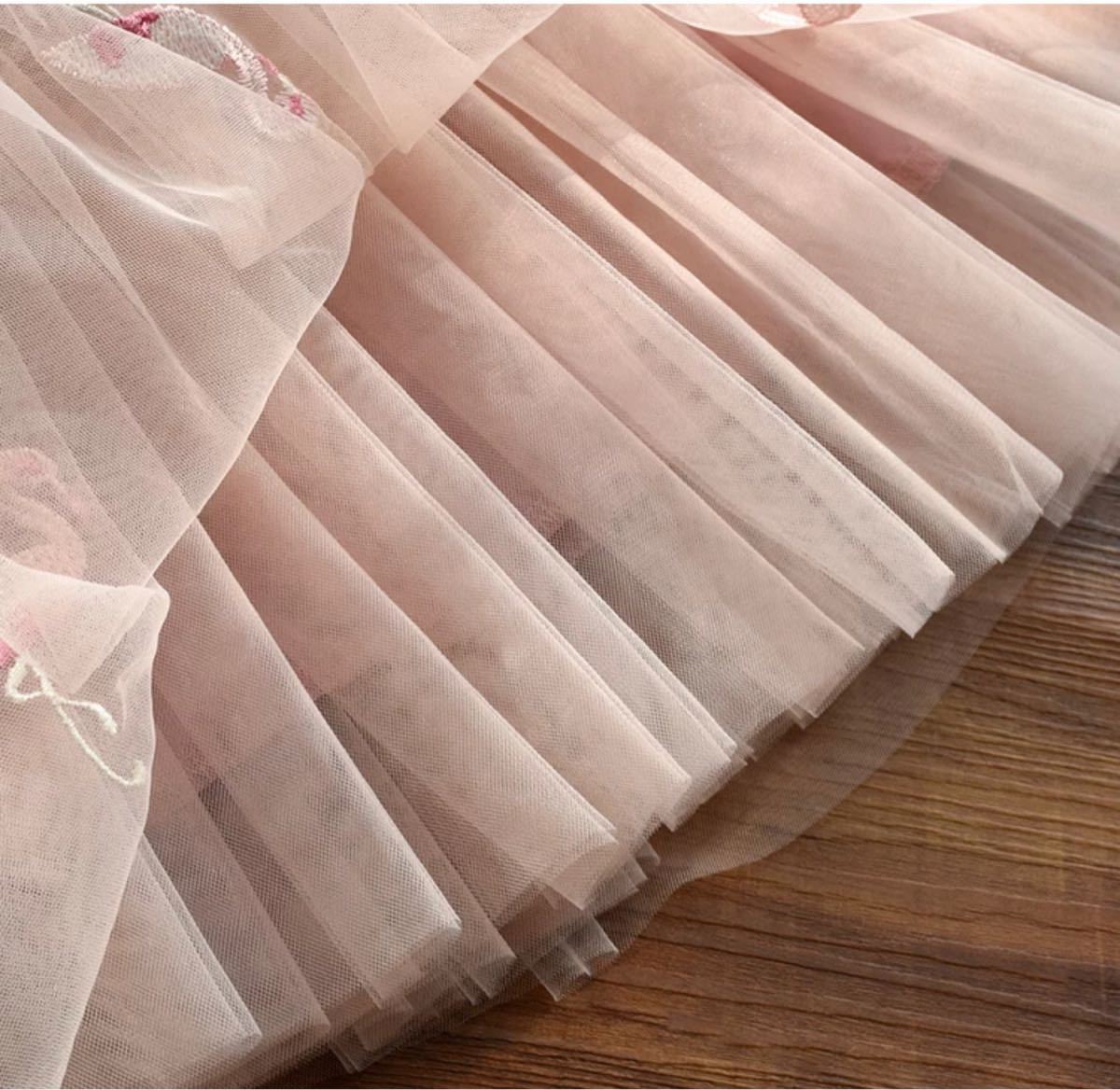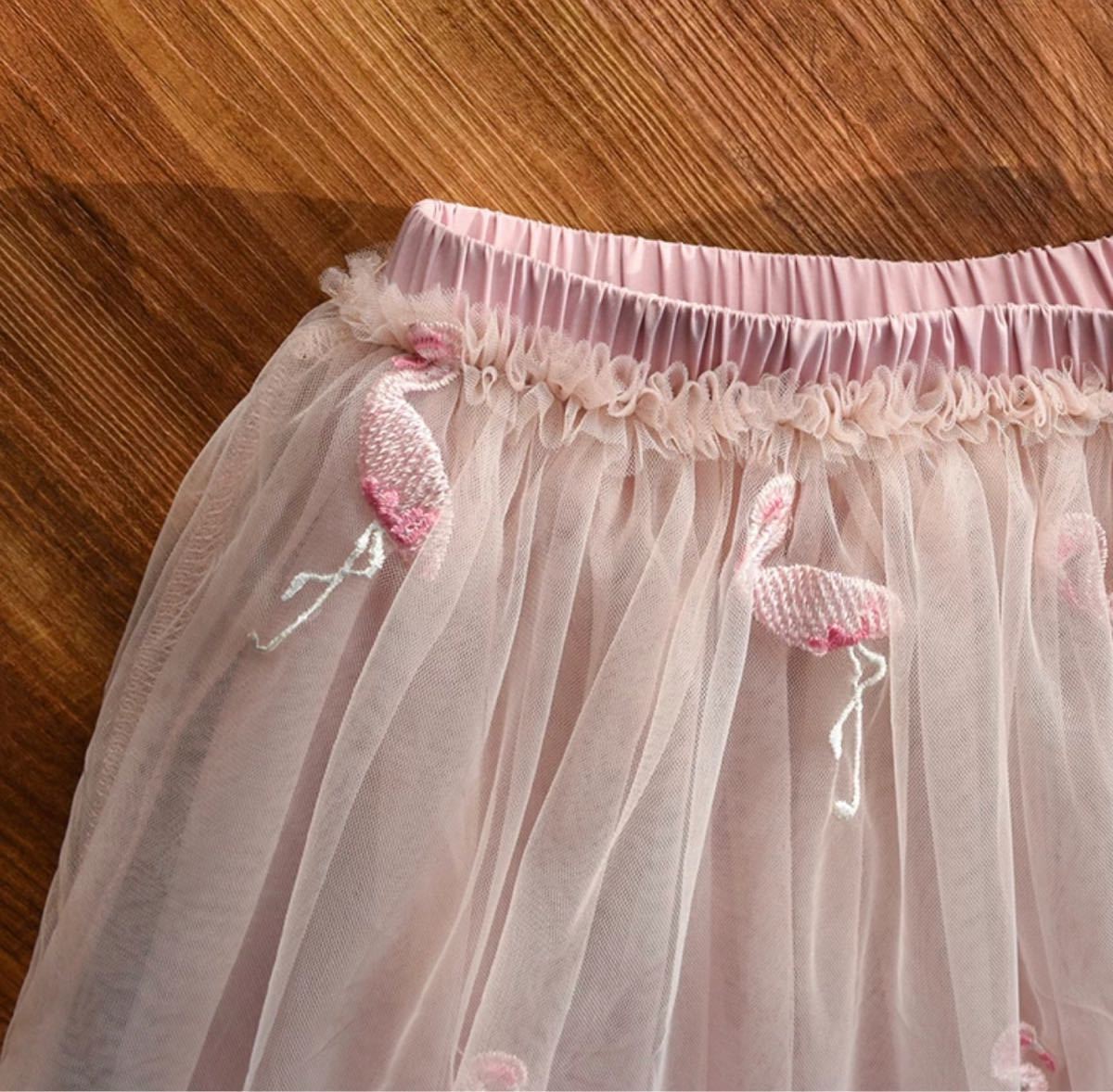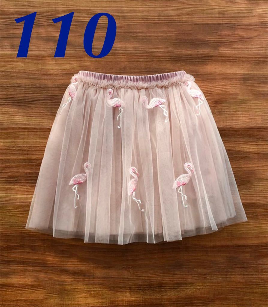 子供ミニチュールスカート 刺繍鶴 ピンク色 110サイズ