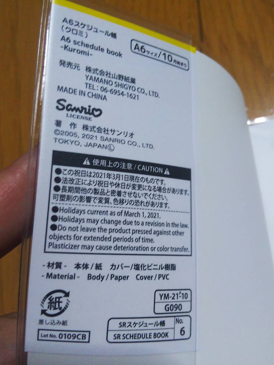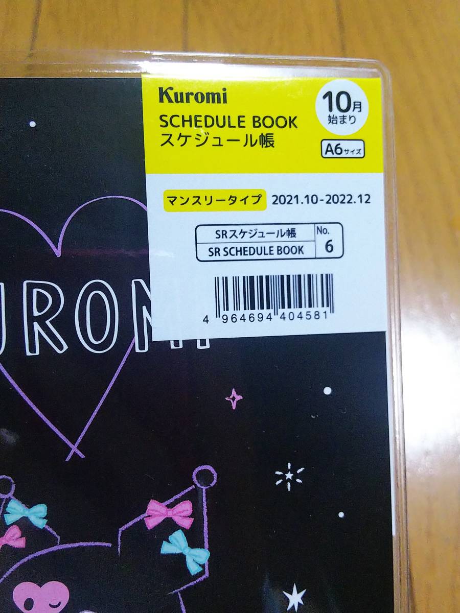 2022年 Kuromi クロミ カレンダー スケジュール帳 手帳 10月始まり A6サイズ