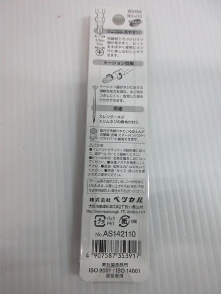 ベッセル 18V対応 スレンダービット +2 全長110mm 2本入 AS142110 |