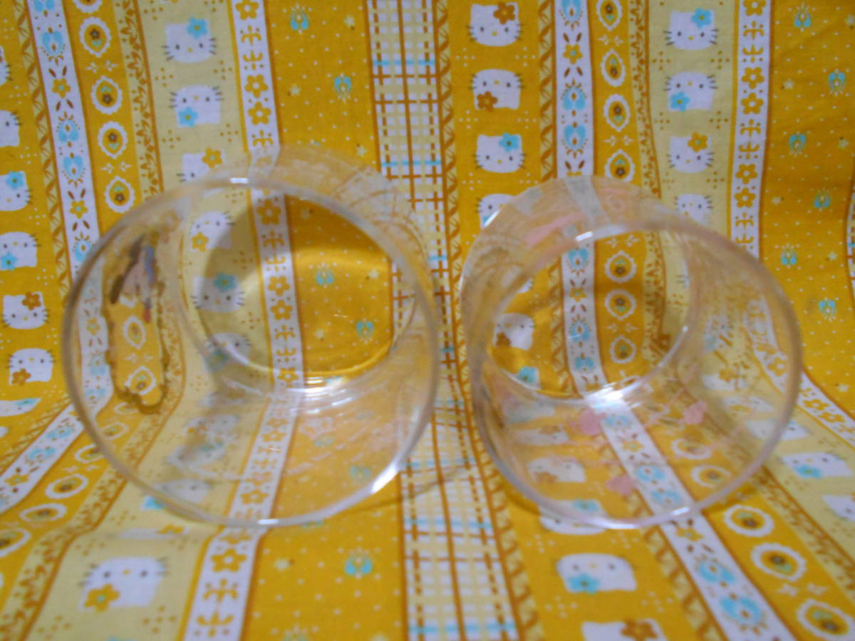 重ねるとミッキーとミニーが向き合っているように見える「シーズンオブザハート」のグラスで大きい方が上部の直径8cm、高さ7.2cm、小さい方が上部の直径7cm、高さ7cmほどの大きさです。「ウォルトディズニー110th」のお品もディズニーのお馴染みのカラクター達がシルエットで描かれているとても可愛い絵柄のお品です。ケースもとてもきれいなイラスト入りです。