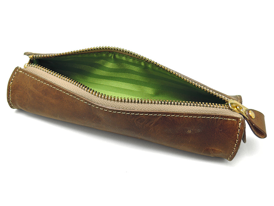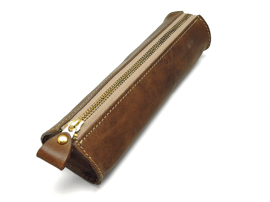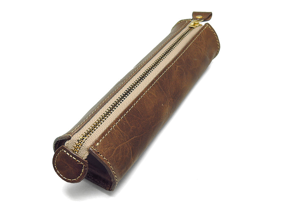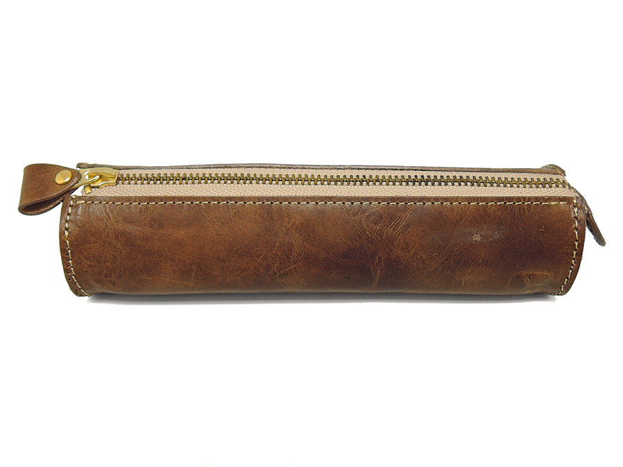 本革 ナチュラルキップ 丸筒ペンケース/ストーン