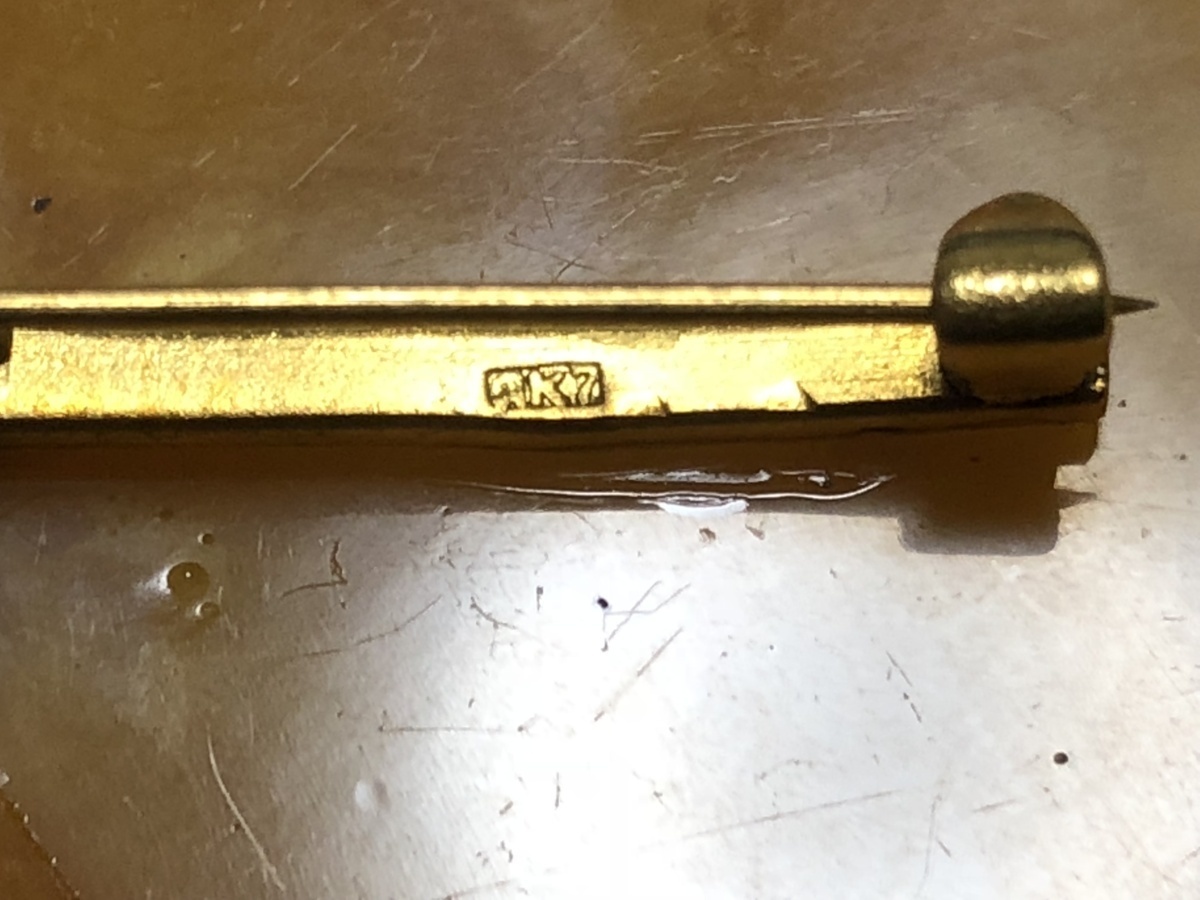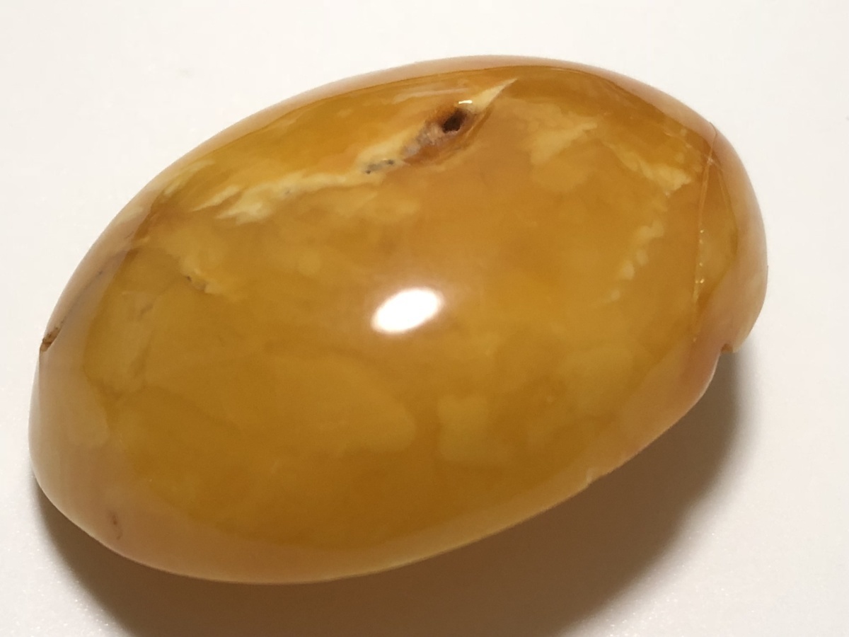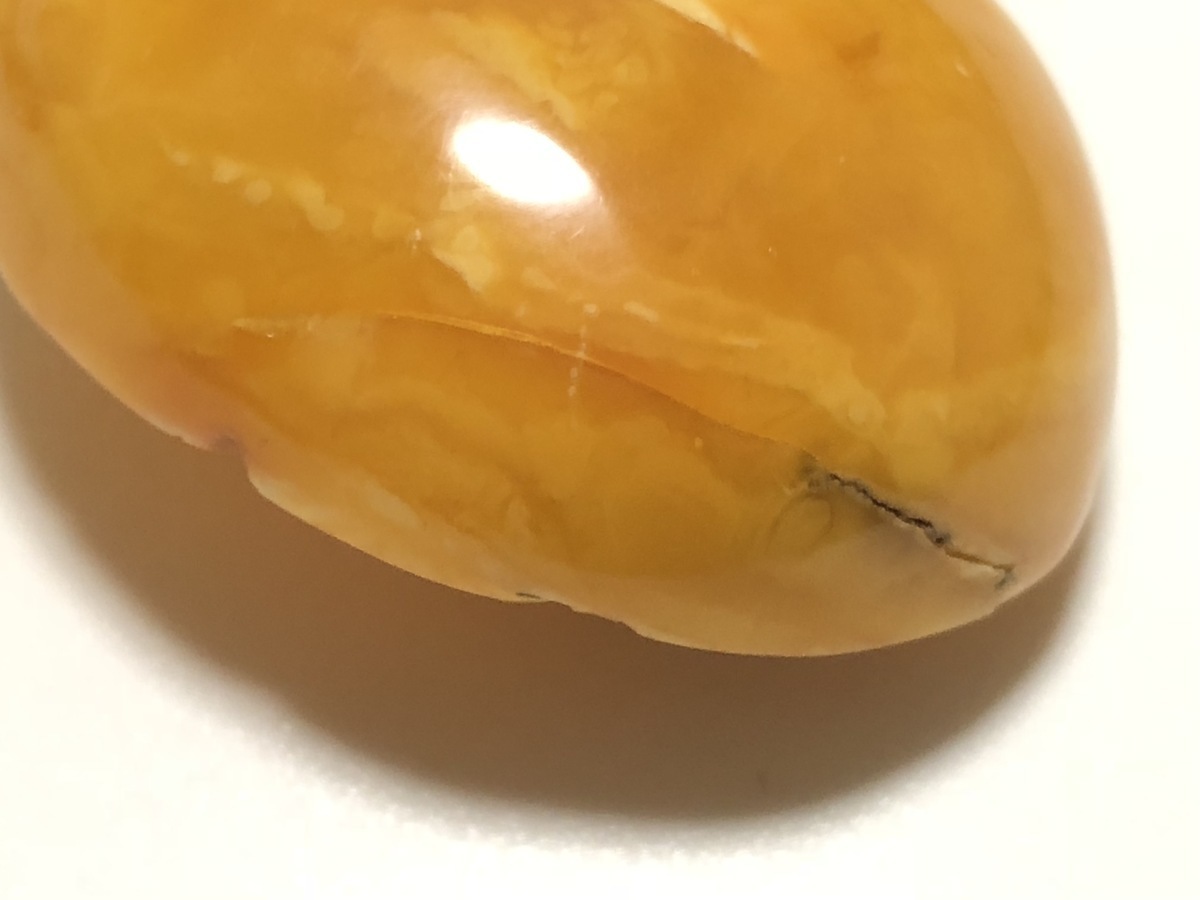 ロイヤルアンバーを使用した、オーバルカットのブローチです。1ヵ所、ヒビが入っています。完全に割れてはいませんが、もろくなっていると思われますので、【難あり】表示です。